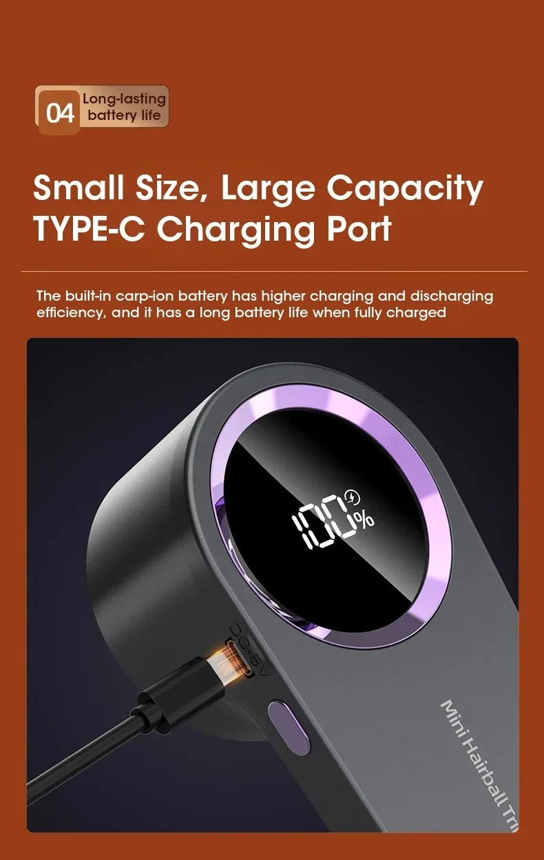 3. 【Type-C 충전 포트】 내장 리튬 배터리, 효율적인 충전