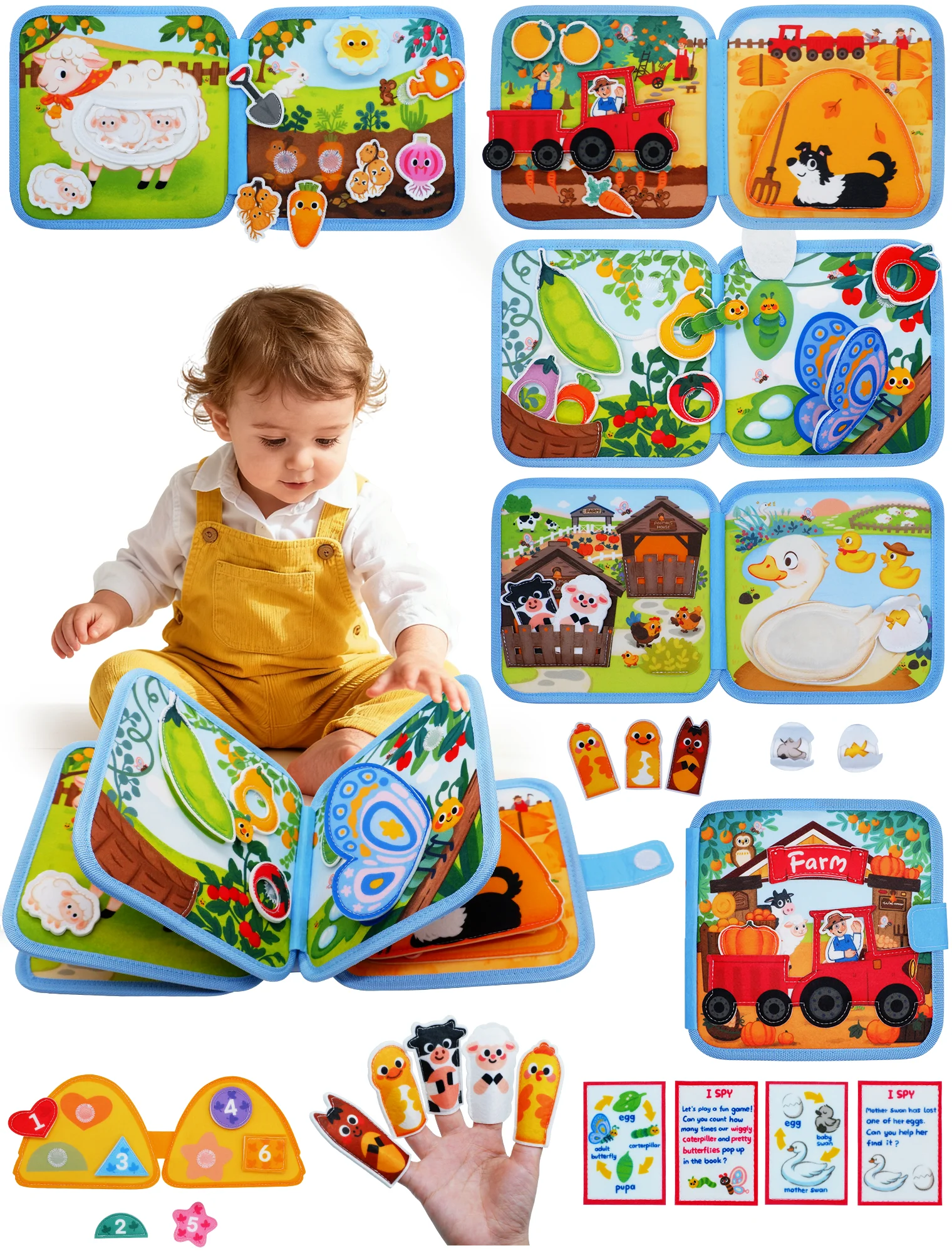 *조기 교육 장난감:펠트 활동 책은 일상 생활 기술, 기본 기술, 캐주얼 게임 등을 다루는 다목적 학습 기술을 갖춘 유아 교육을 위해 특별히 고안되었습니다.밝은 색상과 풍부한 패턴은 아이들의 관심을 끌고 학습 능력을 향상시킬 수 있습니다.