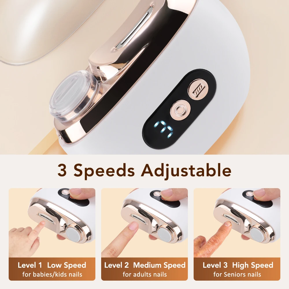 2.저속, 중속, 고속 설정을 갖춘 당사의 전동 손톱깎이는 유아부터 성인, 노인까지 온 가족이 안전하고 효과적으로 손톱을 다듬고 정리할 수 있도록 설계되었습니다.