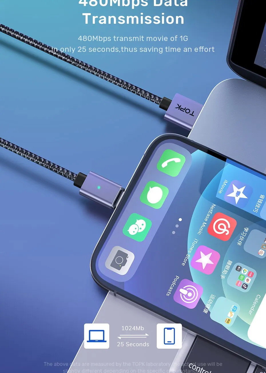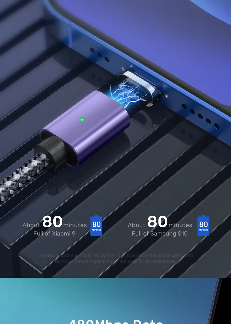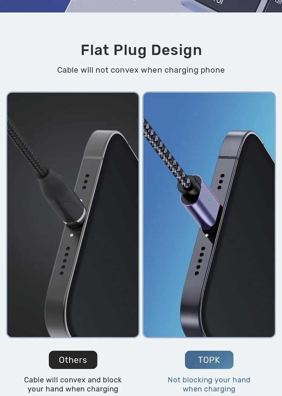 TOPK 3.3피트 6.6피트 자기 충전 케이블 3A, LED 조명이 포함된 USB C/마이크로 케이블, QC 3.0 고속 충전 및 데이터 전송 지원, iPhone, Android 장치용 나일론 편조 자석 휴대폰 충전기 코드