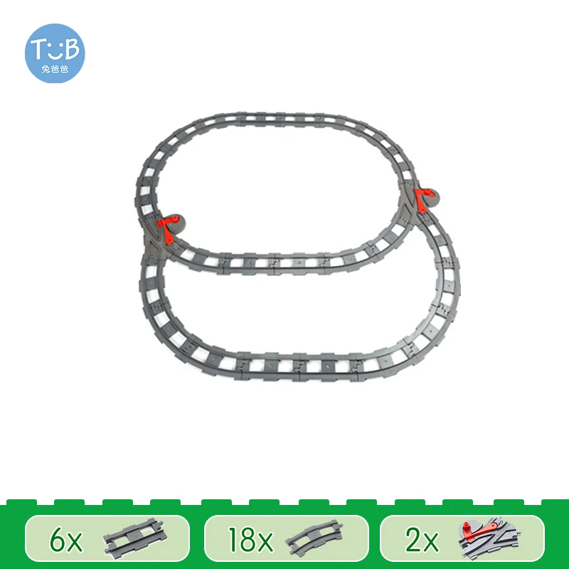 트랙 품질이 좋고, 몰드도 깨끗하며, 모든 부품이 잘 맞물립니다 (듀플로와도 호환됩니다). 제 유일한 불만은 DUPLO 트랙이 밝은 회색인데, 이 제품은 어두운 회색으로 되어 있다는 점입니다.