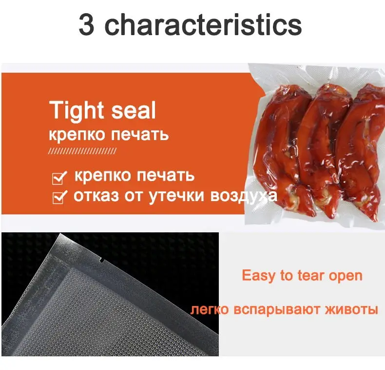 ✅【High Quality】:Two layers 4 mil heavy-duty vacuum sealer bags roll with embossed air-removal channel which are stable for heat and cold, boilable, freezable, microwave and dishwasher machines. Perfect for Sous Vide cooking. Eliminating freezer burn and dehydration to keep your food fresher, juicy and flavorful.