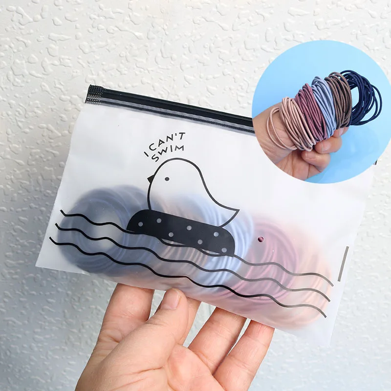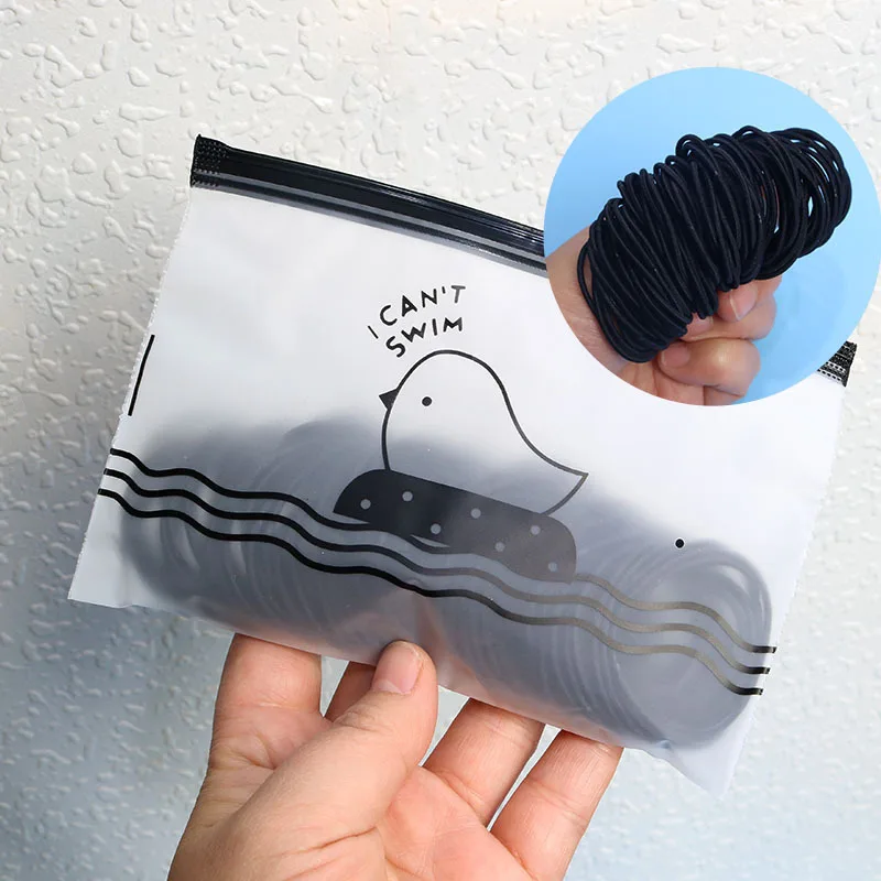 배송 잘 왔고 실제로 100개인지 세보지는 않았으나 양은 많습니다. 사진에서는 파우치처럼 쓸 수 있게 보이지만 실제로 배송 받을 때 배송스티커를 파우치 위에 붙이기 때문에 제거하기 어려워서 그냥 머리끈만 쓸 수 있다고 보는 게 좋습니다.
