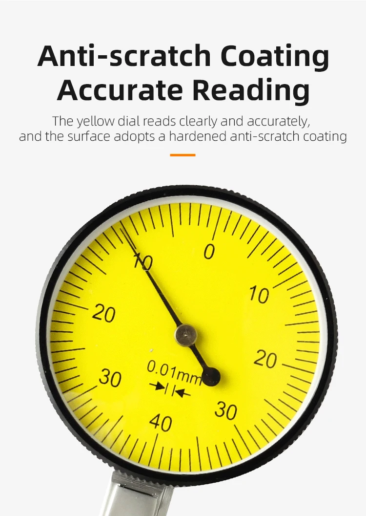 특징: 다이얼 표시기의 정확도는 0.01mm로 본체의 동심도를 보다 정확하게 측정할 수 있습니다.눈금이 명확하고 판독이 직관적이고 편리합니다.고품질 스테인레스 스틸 측정 프로브, 녹 방지 및 내마모성.