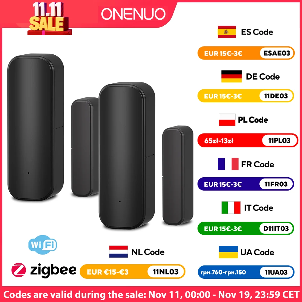 ONENUO 스마트 WiFi 또는 Zigbee 도어 창 알람 센서 개방형 폐쇄 감지기 Wifi 홈 알람 Alexa Google 홈과 호환 가능