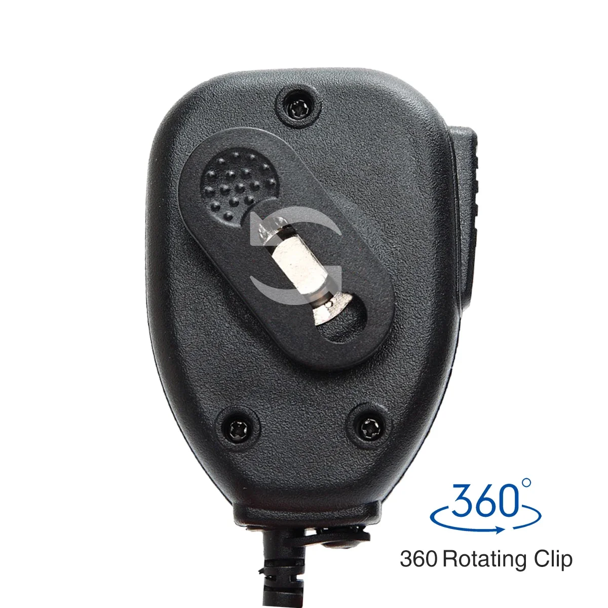 어디서나 클립할 수 있는 PTT(Push to Talk) 버튼이 있는 원격 마이크가 있습니다.