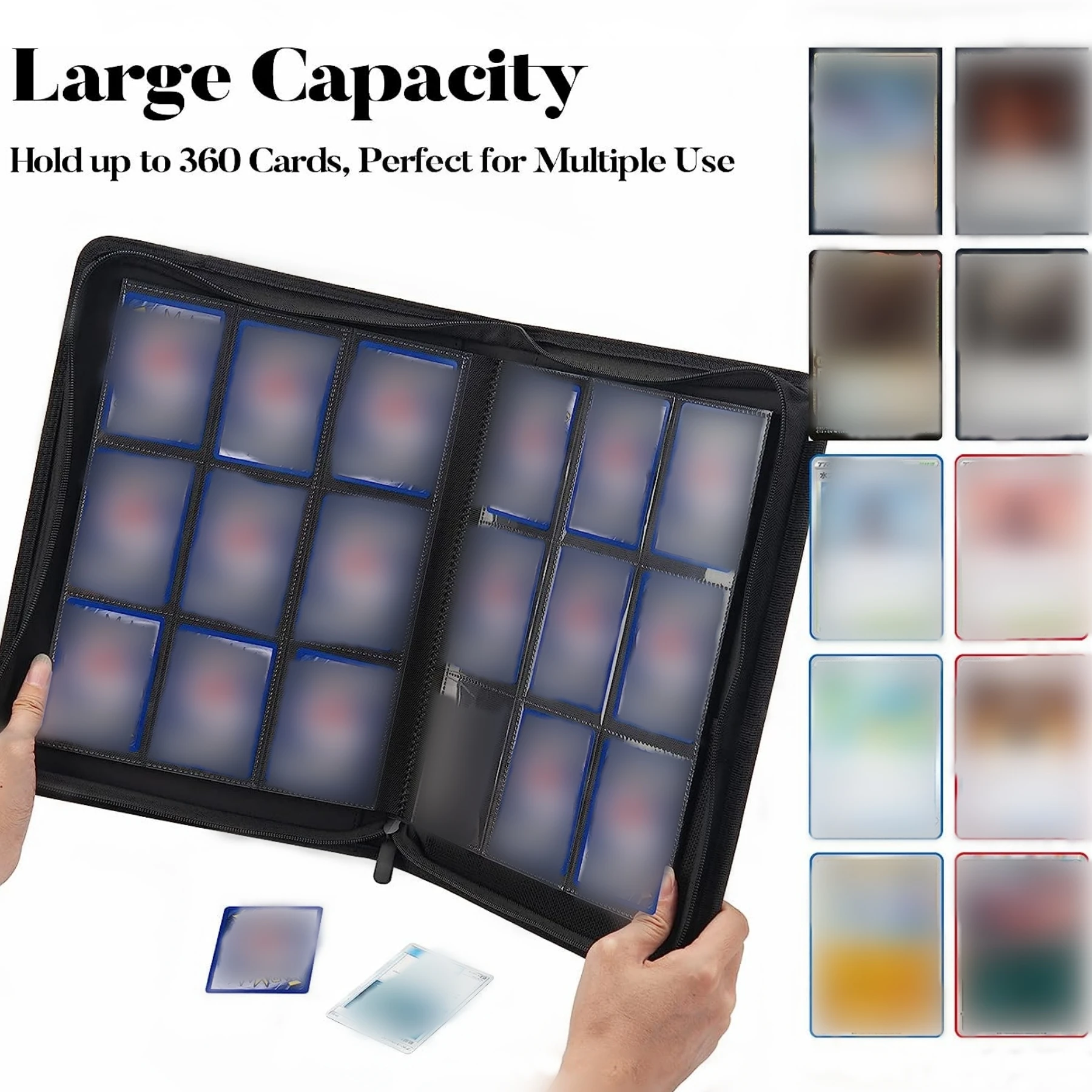 • PU 커버 지퍼:바인더에는 내구성이 뛰어난 PU 커버 지퍼가 장착되어있어 수집 수명을 보장하고 카드가 마모되지 않도록 보호합니다.
