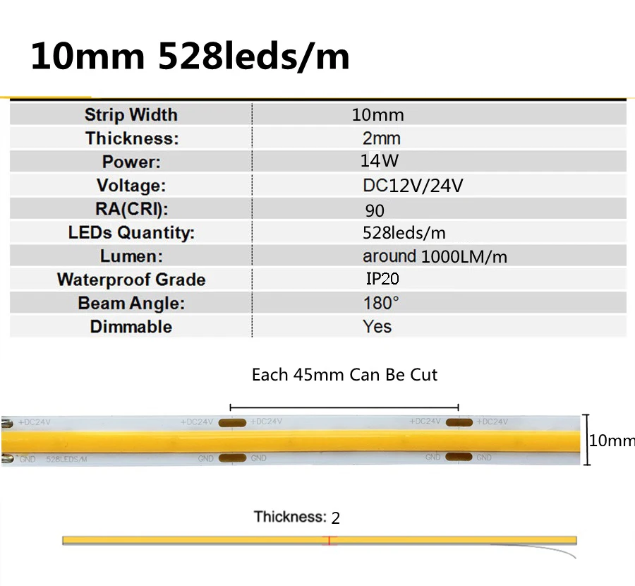 LED 수량: (3mm/5mm) 400개/m, 2mm/8mm 480개/m, 10mm 528개/m