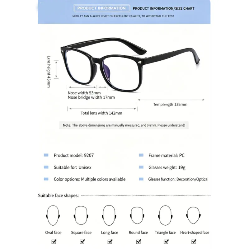 패셔너블한 사각형 프레임은 남성과 여성 모두에게 적합하며 어떤 의상에도 다용도로 스타일리시한 액세서리를 제공합니다.