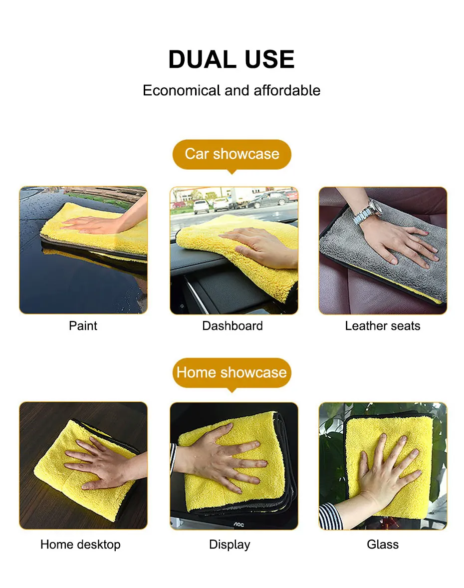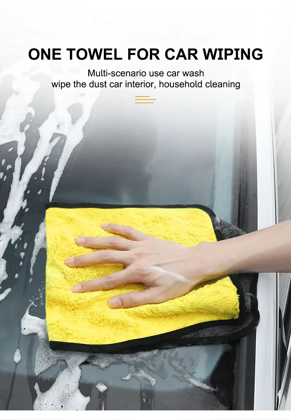 • 다재다능한이 수건은 자동차뿐만 아니라 창문, 거울 등과 같은 다른 표면을 청소하는 데에도 사용할 수 있습니다.