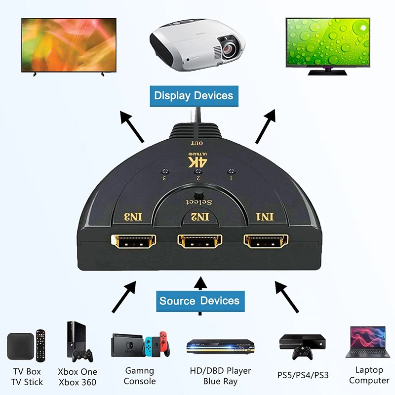 30fps의 최대 4K 해상도, 36비트 딥 컬러, 3D 및 비압축/압축 오디오 형식은 이 스위치에서 지원되는 최신 HD 기능 중 일부입니다.