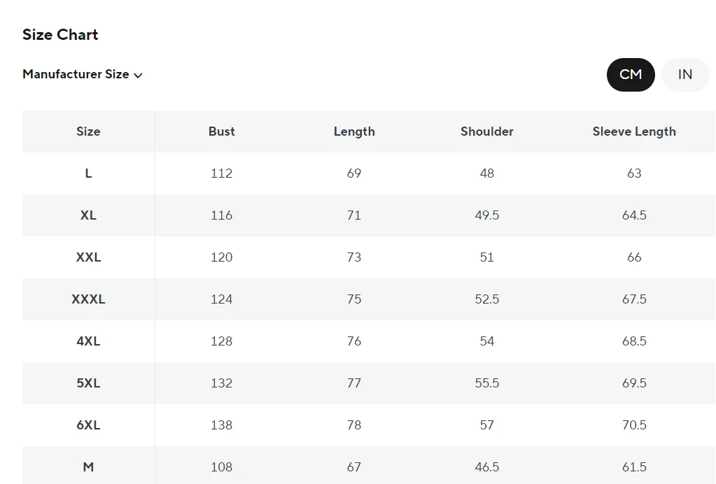 따라서 구매하기 전에 다음 차트를 확인했는지 확인하십시오. (수동 측정으로 인해 1cm가 다를 수 있으므로 감사합니다)