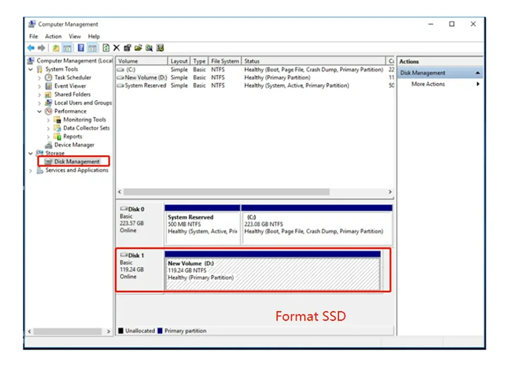 5. 새 하드 디스크를 하드 디스크 박스에 처음 설치했을 때 컴퓨터에 디스플레이가 표시되지 않으면, "디스크 관리"로 들어가 필요한 하드 디스크를 포맷해 주세요.