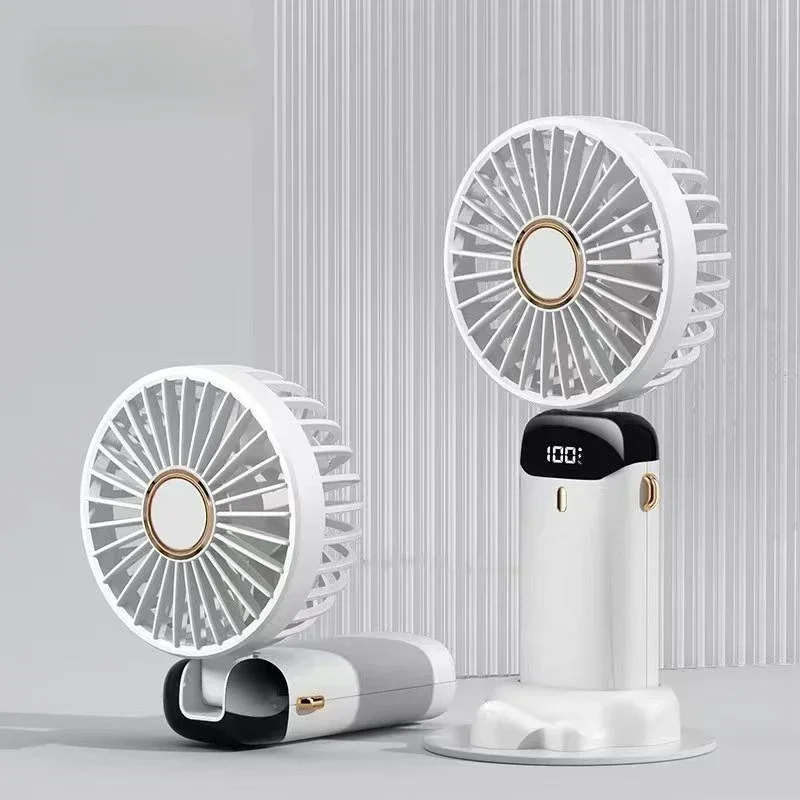 휴대용 휴대용 개인 충전식 팬 LED 디지털 디스플레이 90 ° 조정 가능한 충전식 팬, 사무실 룸 테이블 야외 여행을위한 5 단 바람 미니 아로마 테라피 팬