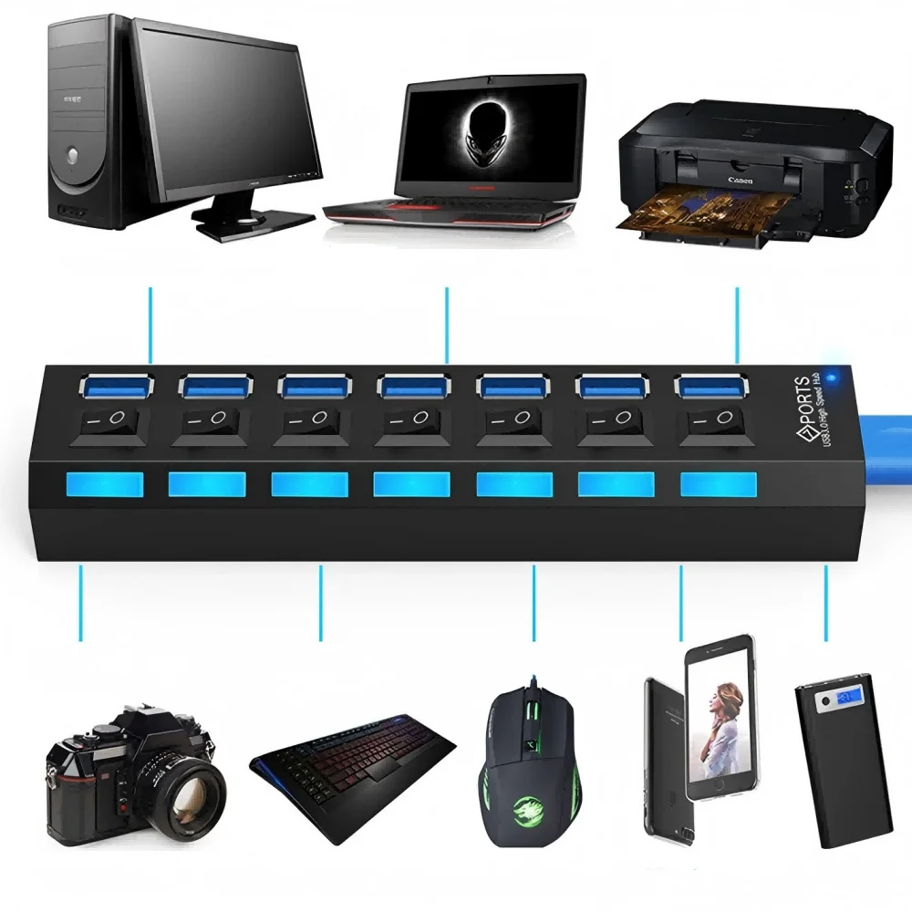 • 다중 USB 포트: 최대 7개의 USB 포트로 장치 연결을 확장하여 여러 장치를 동시에 연결할 수 있습니다.