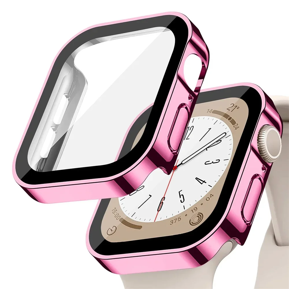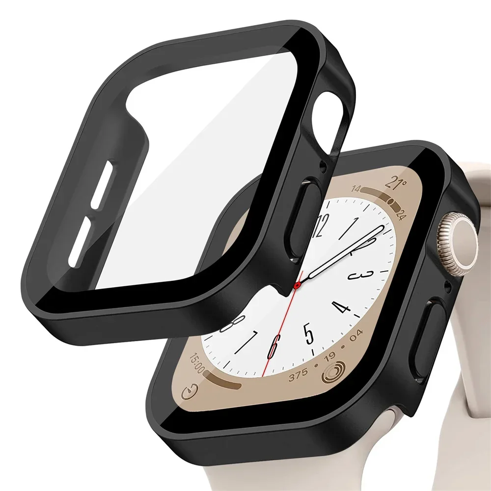 Apple Watch 8 44mm 40mm 42mm 38mm PC 스트레이트 에지 범퍼 화면 보호기 케이스 iWatch 시리즈 7 6 5 4 3 se 41mm 45mm 용 강화 유리 + 커버