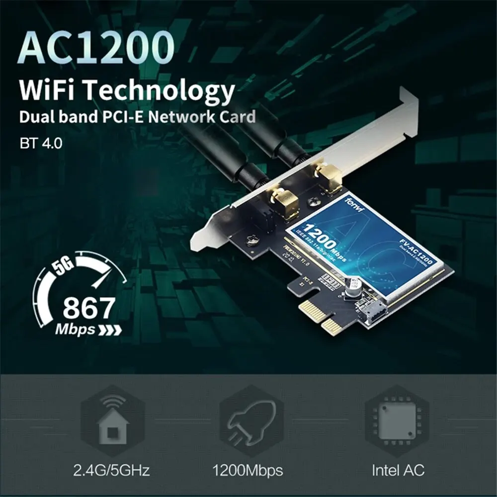 FENVI 1200Mbps 무선 WiFi 카드 PCIE 어댑터 FV-AC1200 듀얼 밴드 2.4GHz/5GHz 802.11AC 블루투스 4.0 WiFi 어댑터 Win7/10/11용