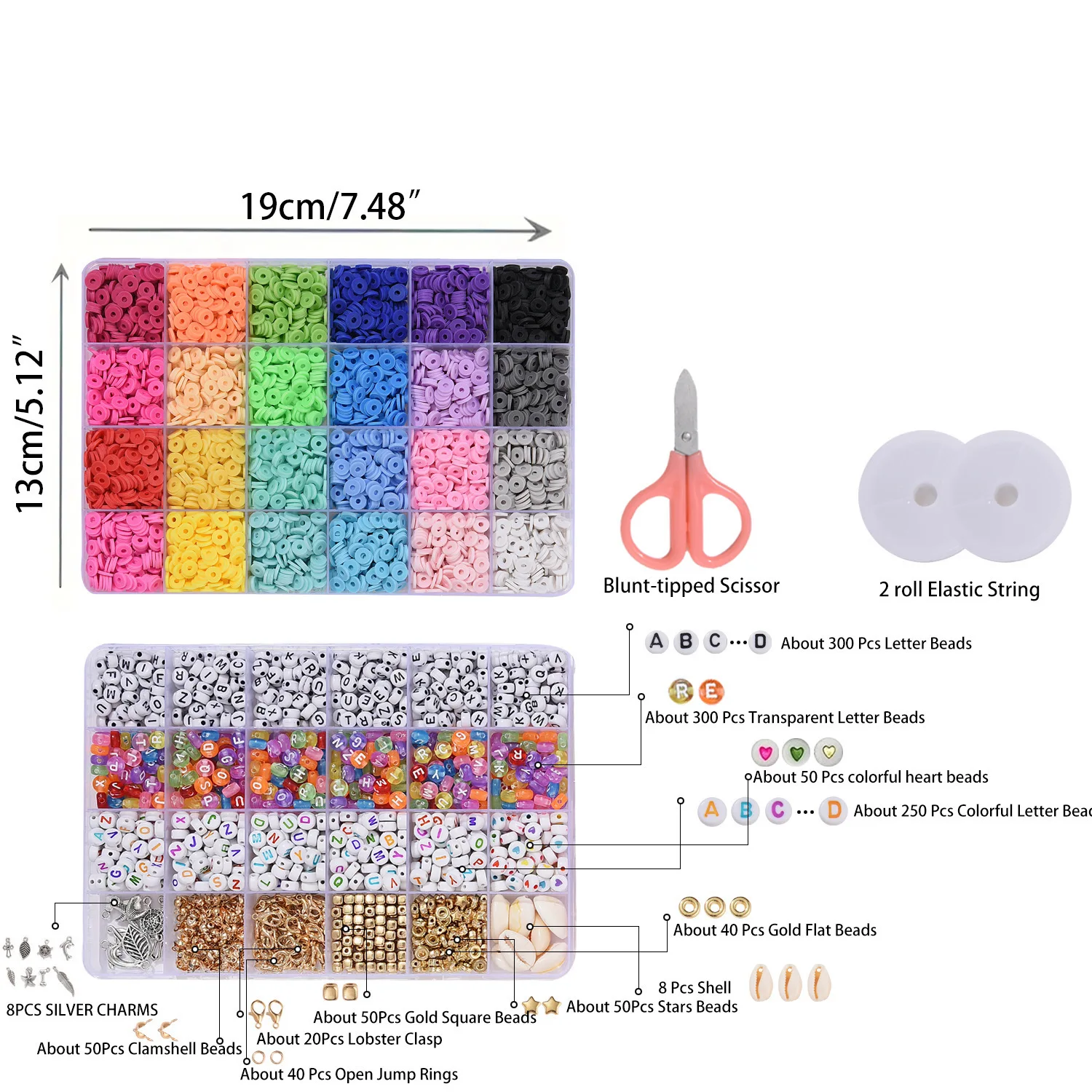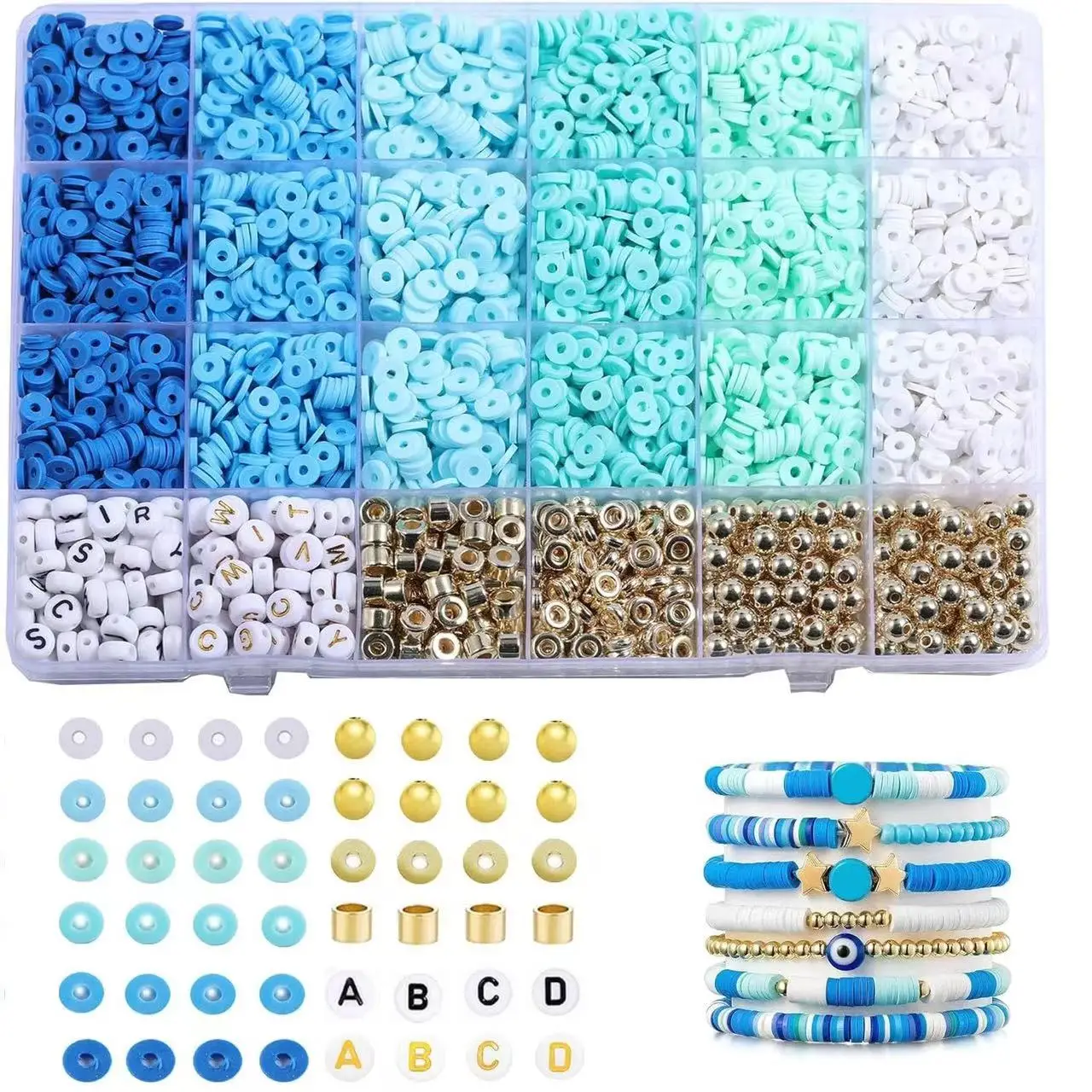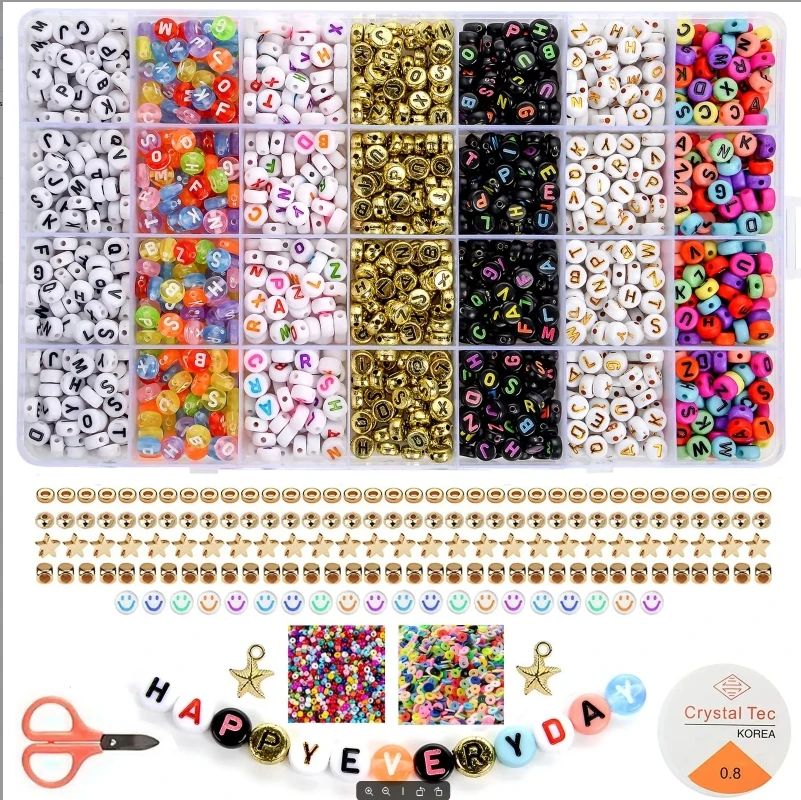 🌸시작하는 데 필요한 모든 것: 이 비즈 키트에는 평평한 폴리머 클레이 비즈와 참 키트(무작위 문자 비즈 2종, 웃는 얼굴 비즈, 황금 스페이서 비즈, 황금 껍질, 황금색)를 포함하여 아름다운 팔찌와 주얼리 만들기를 시작하는 데 필요한 모든 것이 포함되어 있습니다. 불가사리, 실버 펜던트, 랍스터 걸쇠 세트 등), 10미터 길이의 신축성 있는 끈 1롤, 가위, 핀셋.Dowsabel 주얼리 제작 키트를 출발점으로 삼아 새로운 멋진 여행을 시작해 보세요.