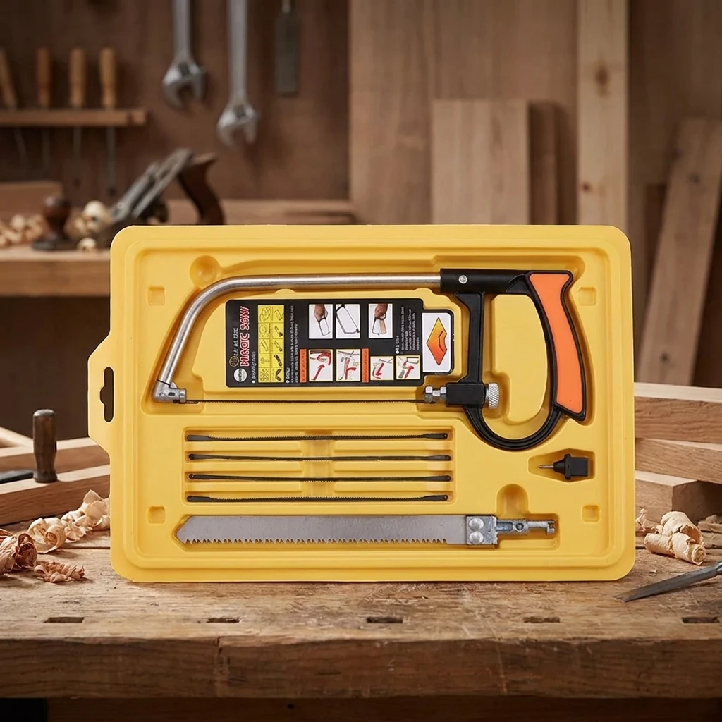 6개의 교체 가능한 블레이드가 포함되어 있어 하나의 도구로 목재, 금속, 플라스틱 등을 쉽게 다룰 수 있습니다.