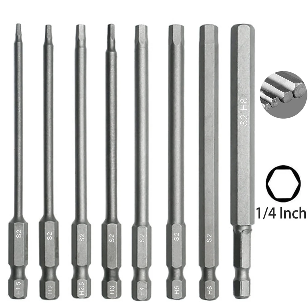 100mm 8pcs 육각 머리 알렌 렌치 드릴 비트 세트 SAE 미터법 알렌 전기 육각 비트 스크루 드라이버 소켓 비트 전동 공구 부품