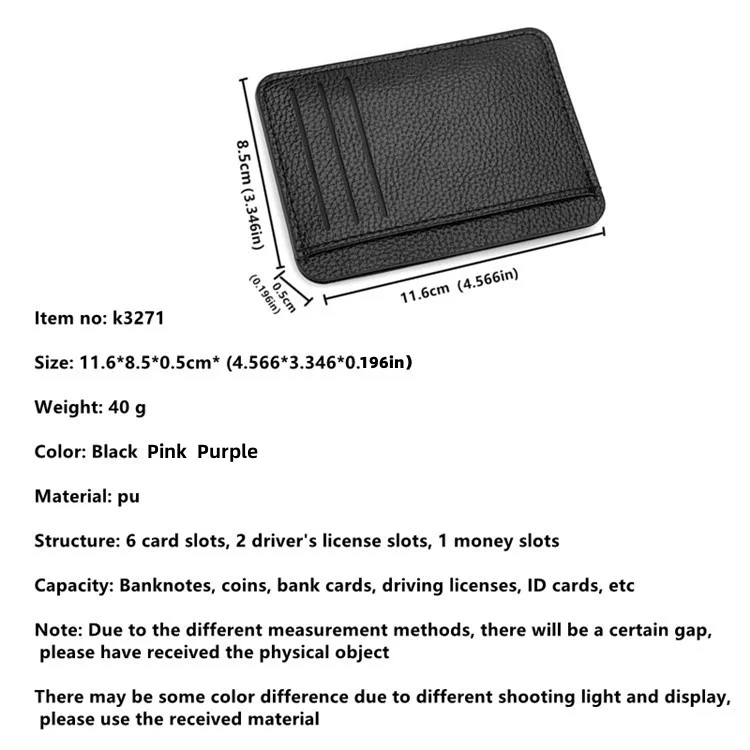 Packing includes :1PC PU card bag