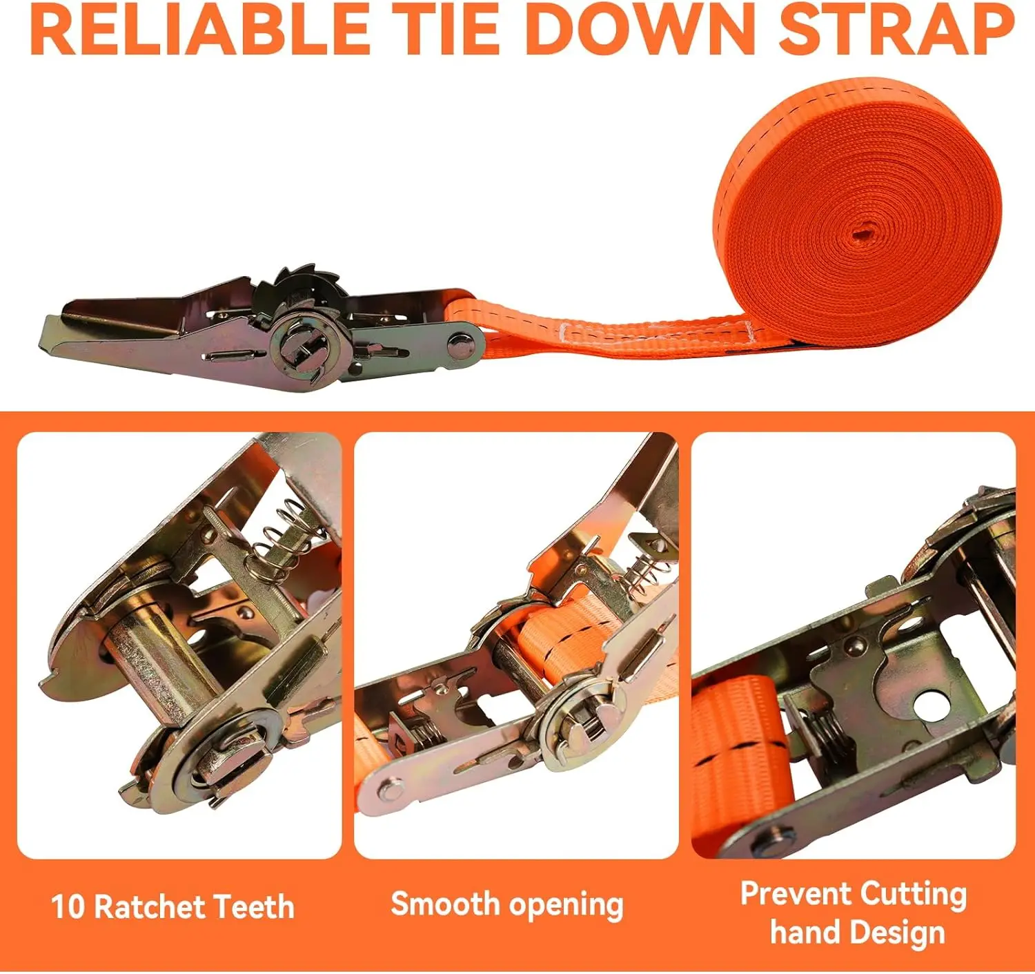 1. 내구성이 뛰어난 폴리에스테르 소재: 고품질 폴리에스테르로 제작된 이 래칫 스트랩은 강도와 내구성을 고려하여 설계되었습니다. 재료를 두껍게 하고 넓게 하여 견고한 하중 지지력과 오래 지속되는 성능을 보장합니다. 무거운 하중을 견딜 수 있으며 화물을 안정적으로 지지할 수 있습니다.