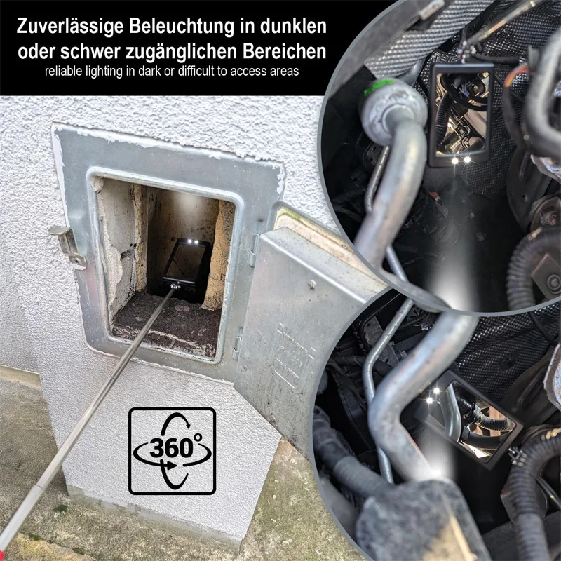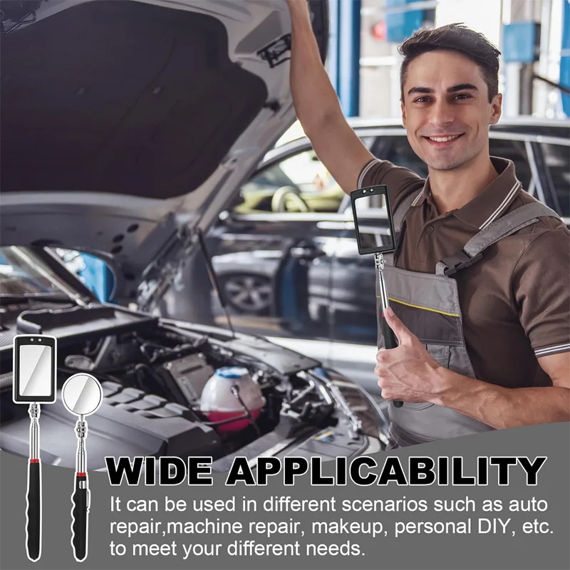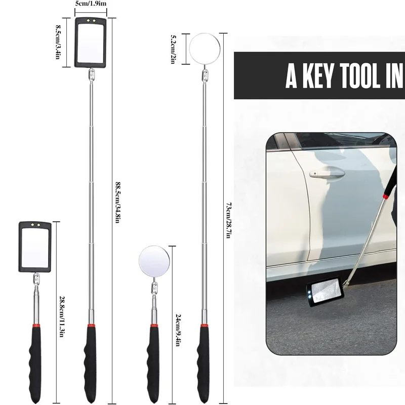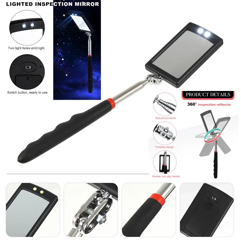 360° 검사 거울 LED 조명 연장형 망원경 검사 작업 거울 (그립 손잡이 포함) 차량 정비 수리 도구