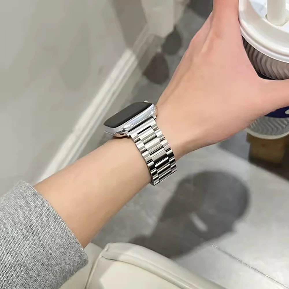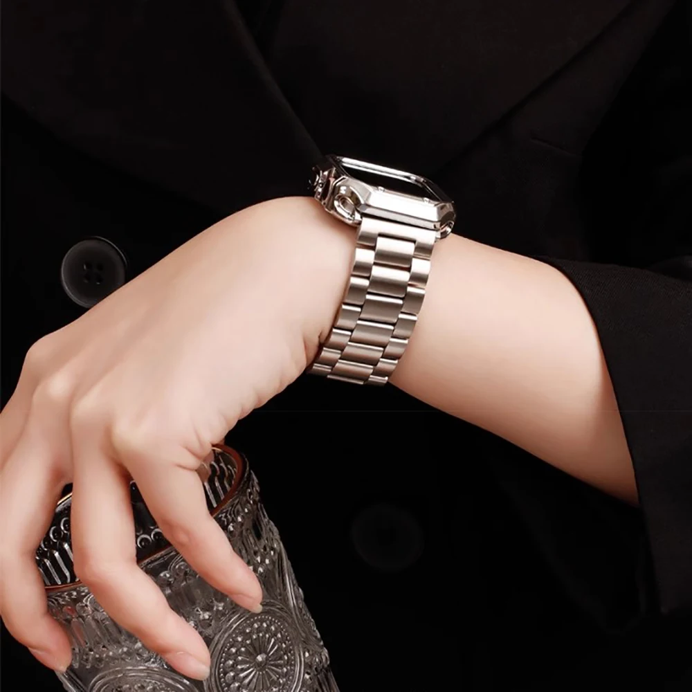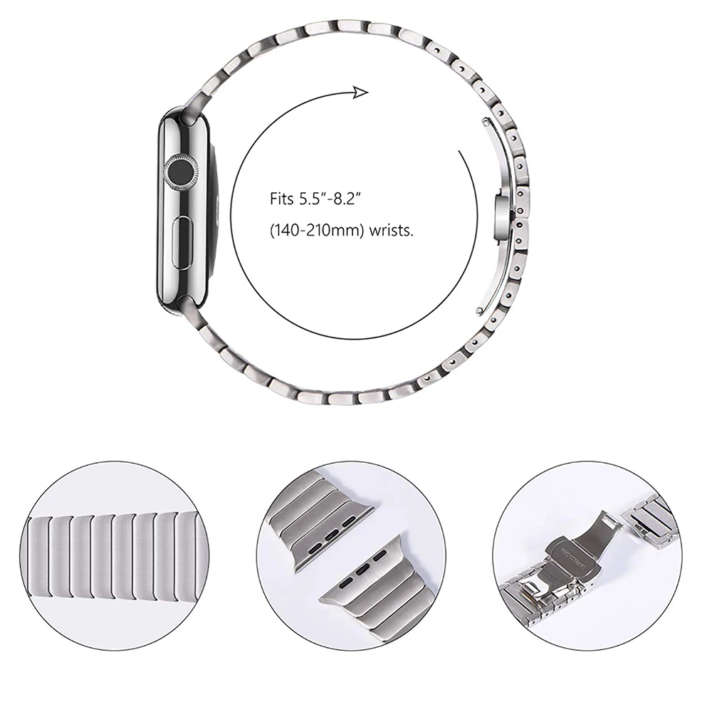 • 링크 팔찌 디자인:링크 팔찌 디자인은 Apple Watch에 우아한 느낌을 더해 패셔너블한 액세서리로 만들어줍니다.시계의 외관을 업그레이드하려는 사람들에게 이상적입니다.
