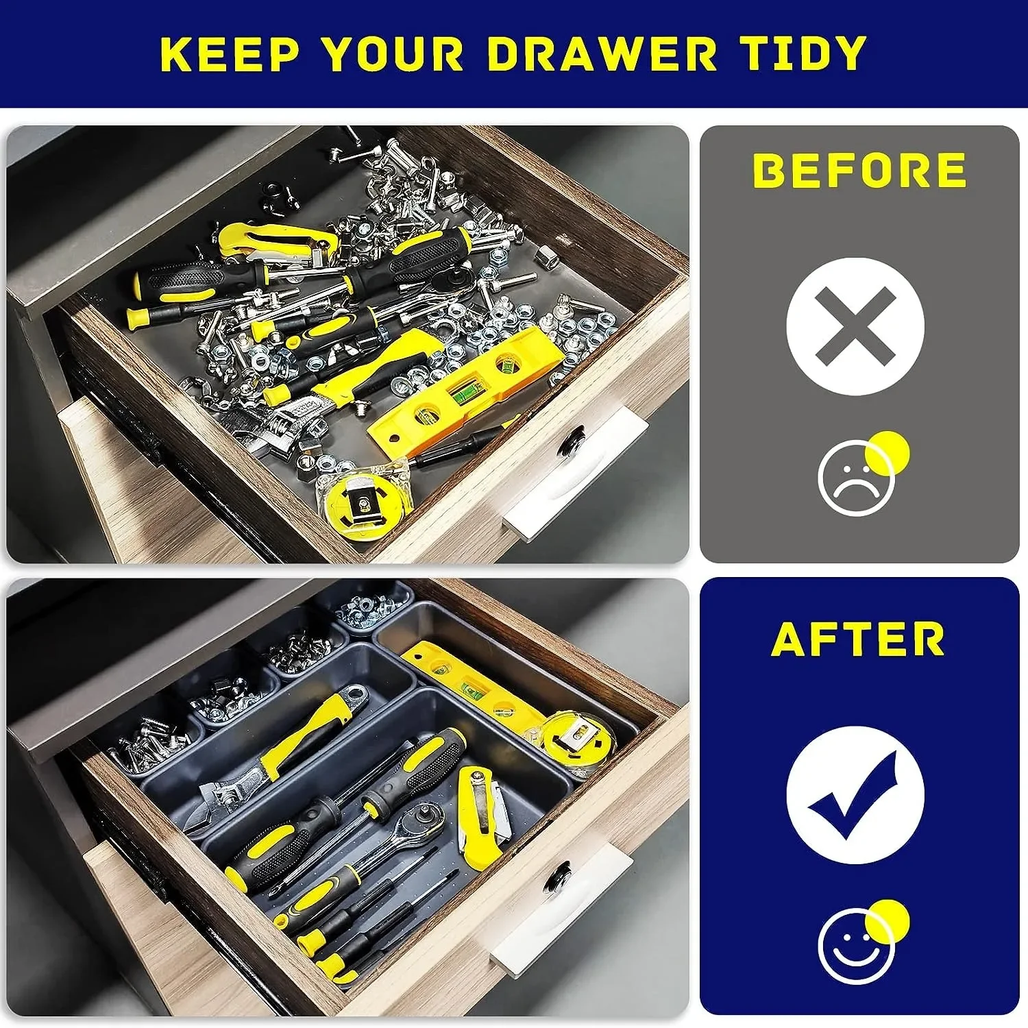 【다양한 사용 시나리오】 이 8/16/22/24/32/45/47개 도구 상자 정리 도구는 도구 상자, 도구 카트, 롤러 도구 상자, 작업대 등을 정리하는 데 적합합니다.얕은 서랍과 표준 도구 상자에 들어갈 수 있습니다. 그리고 이 도구 보관 상자는 주방, 욕실, 화장대 또는 사무실에서도 사용할 수 있습니다. 이 다용도 책상 서랍 정리함 트레이는 물건을 정돈된 상태로 유지합니다.자유롭게 믹스 앤 매치가 가능해요