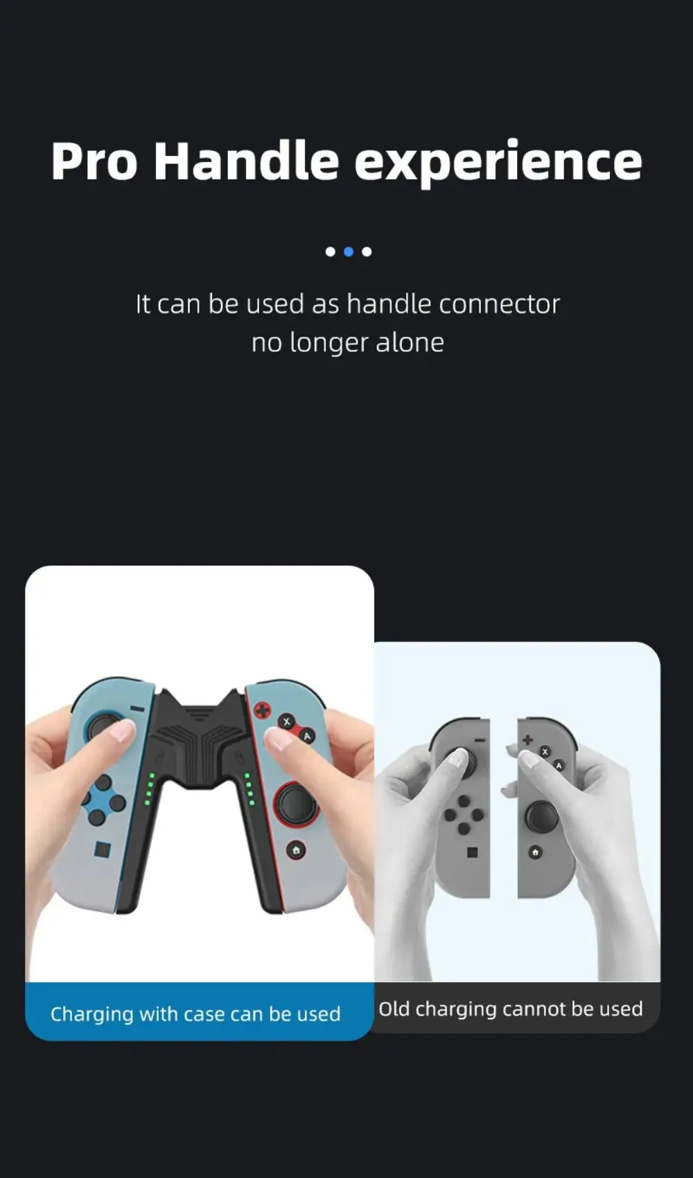 • 편리한 충전:이 그립 브래킷은 충전 스테이션 역할을 하여 중단 없이 플레이할 수 있도록 게임 컨트롤러의 전원을 계속 켜두는 역할을 합니다.