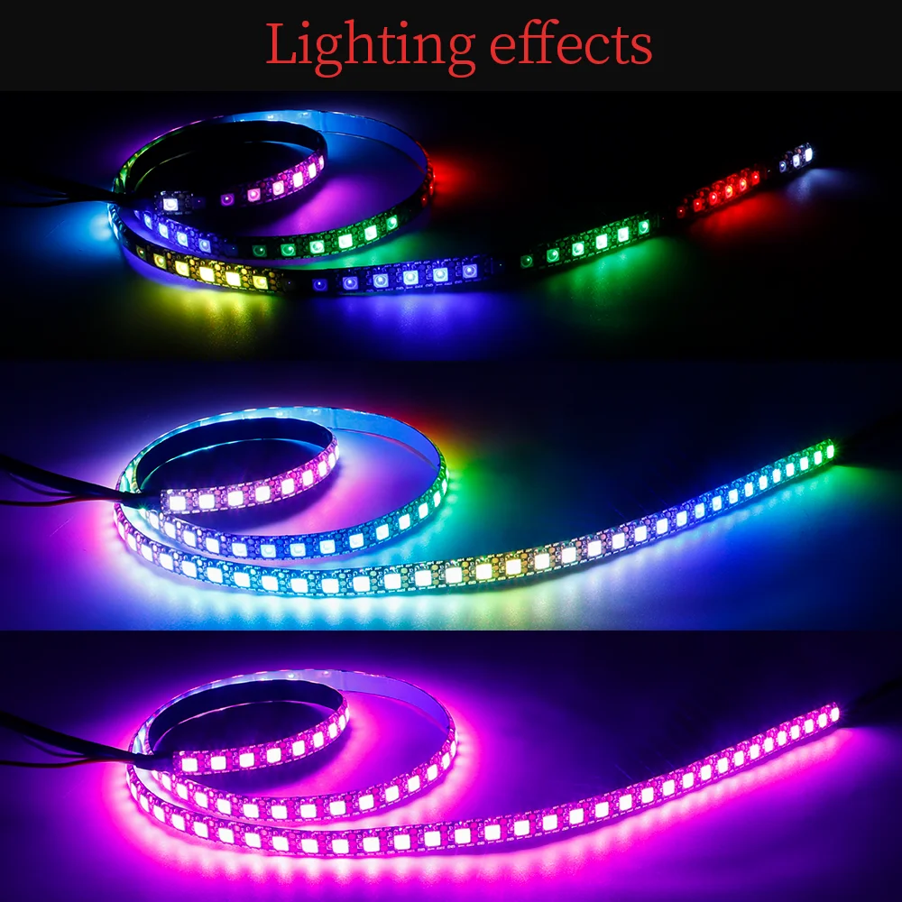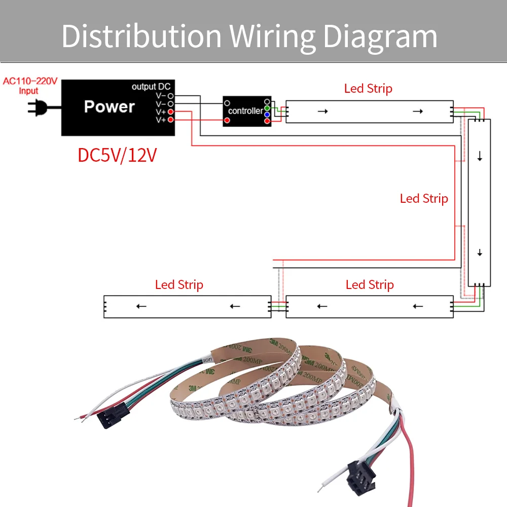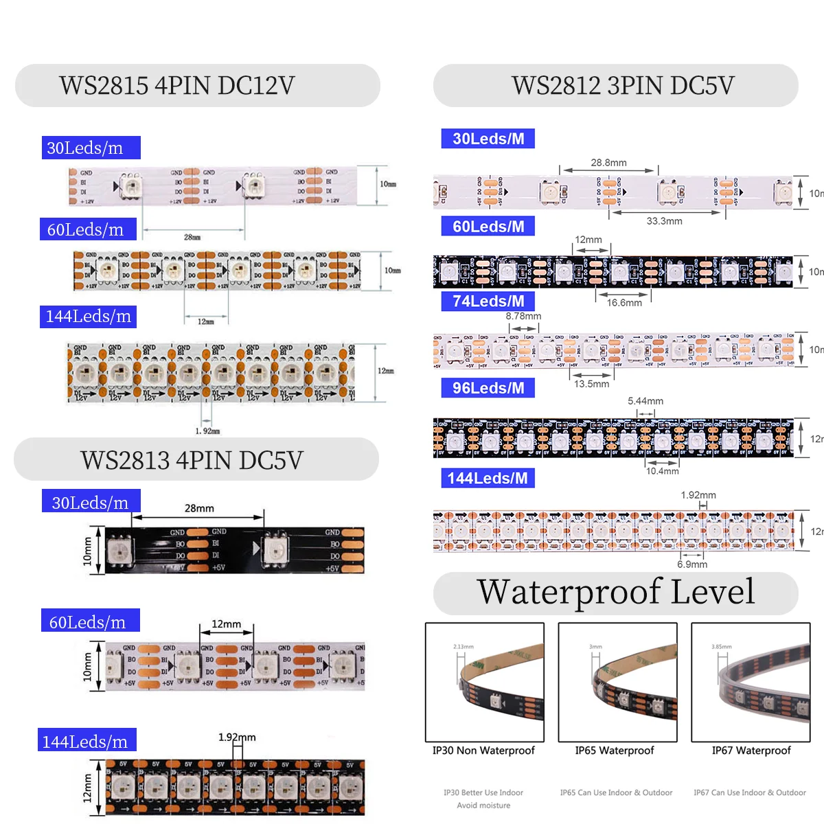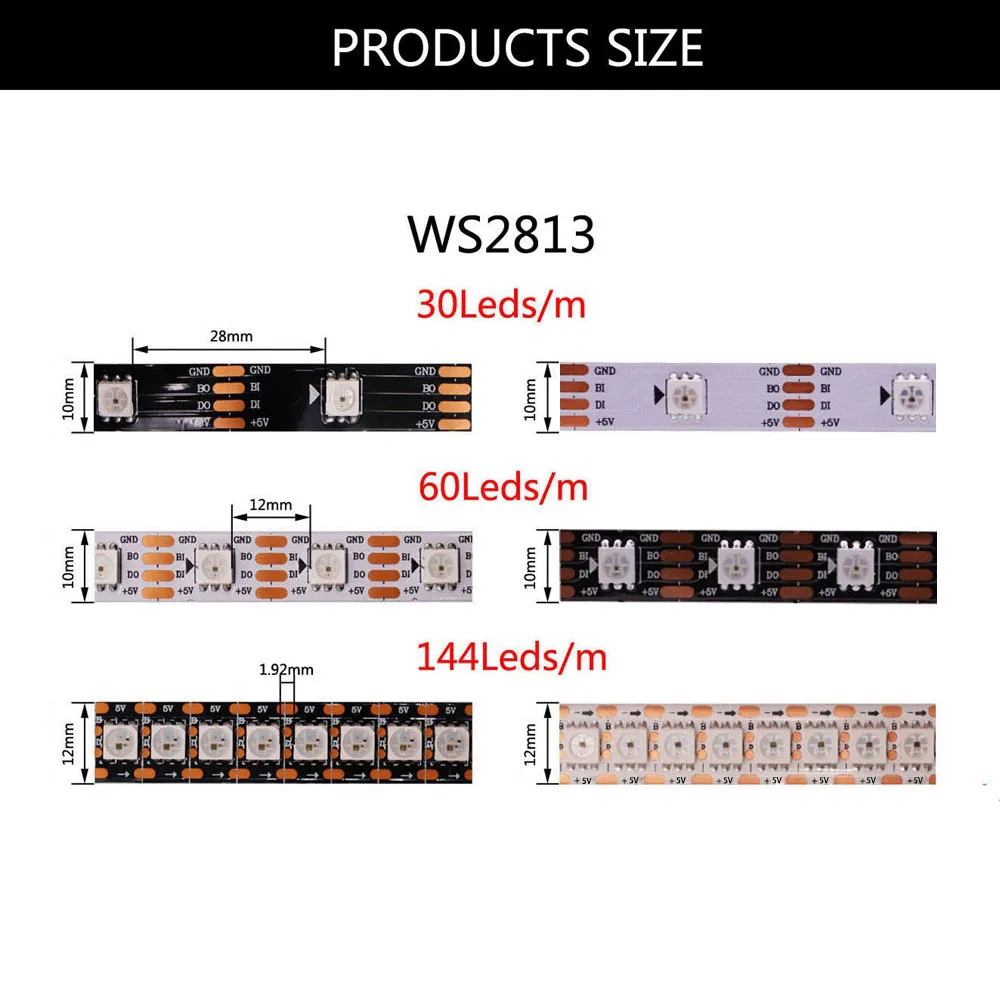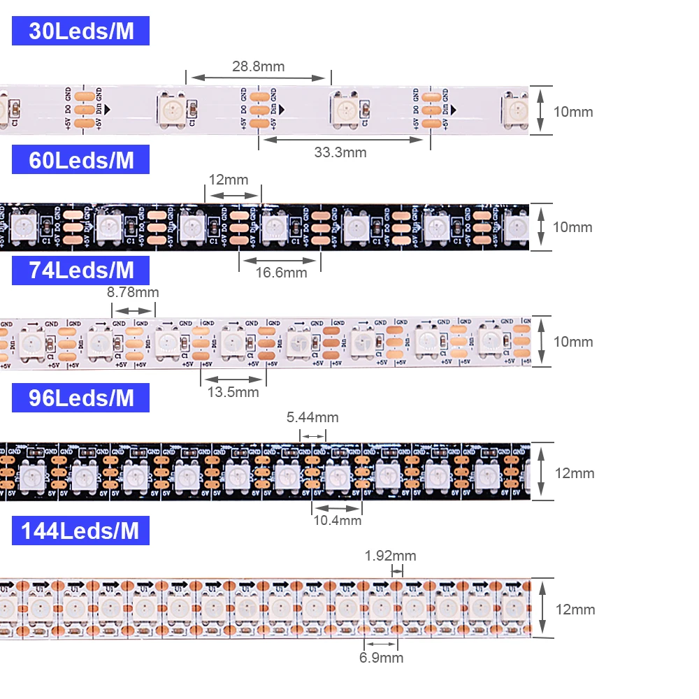 참고3미터,4미터,5미터 WS2812B WS2813 144Leds/m 전압 강하가 있을 수 있습니다. 빨간색과 흰색 케이블 와이어 끝에 5V 전압을 추가해야 합니다.
