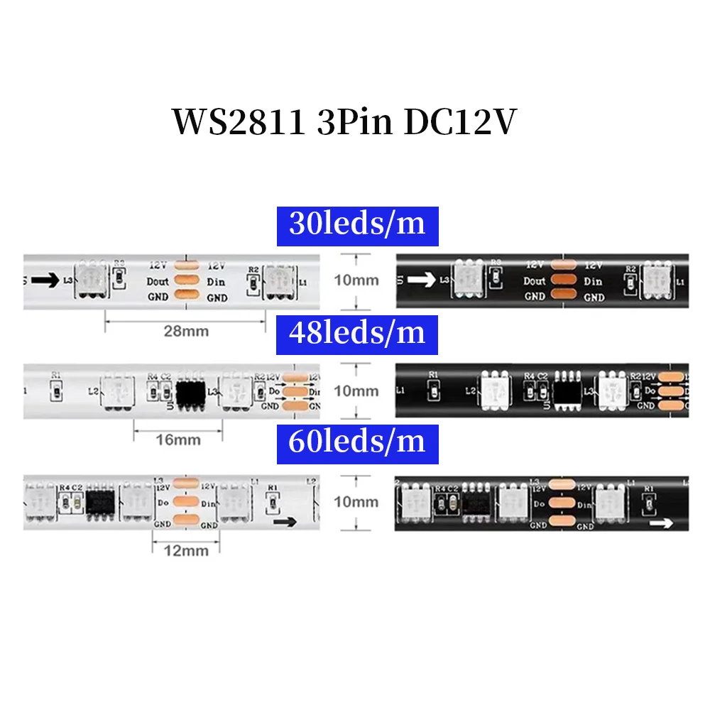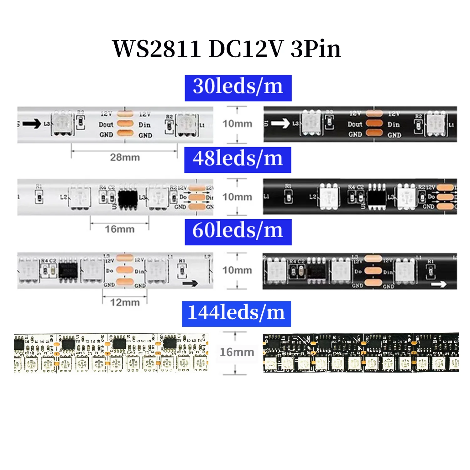 비.1M/2M/3M/4M/5M/롤 12V WS2811 RGB 스트립