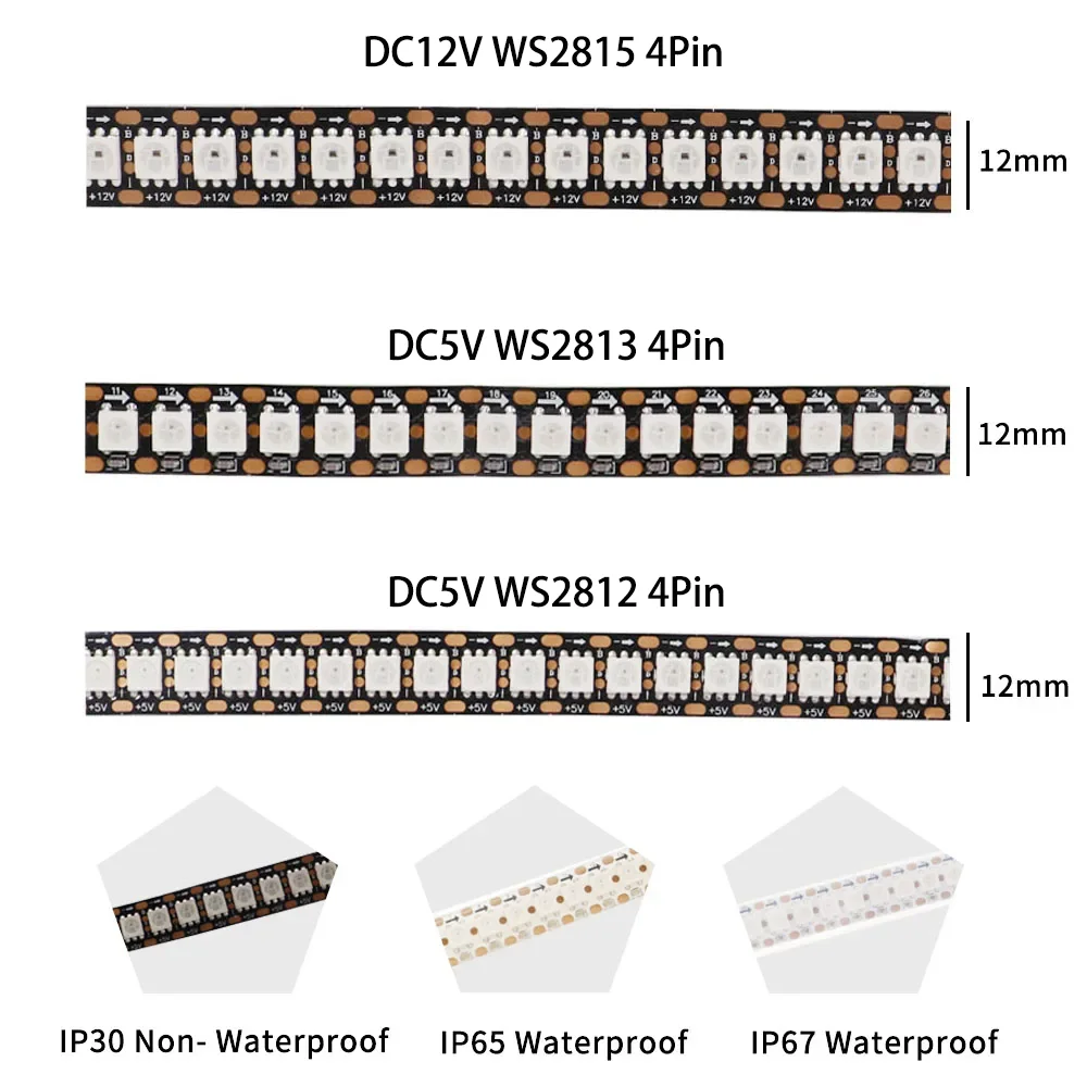 IC 유형: 개선된 버전 WS2815 IC(5050 SMD RGB LED 내부에 내장)