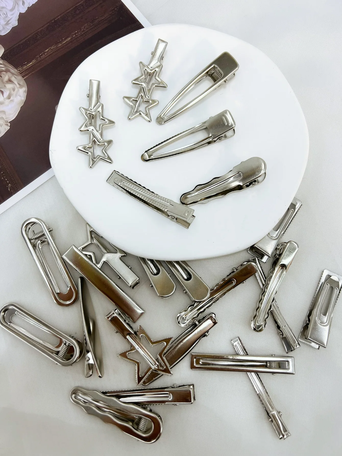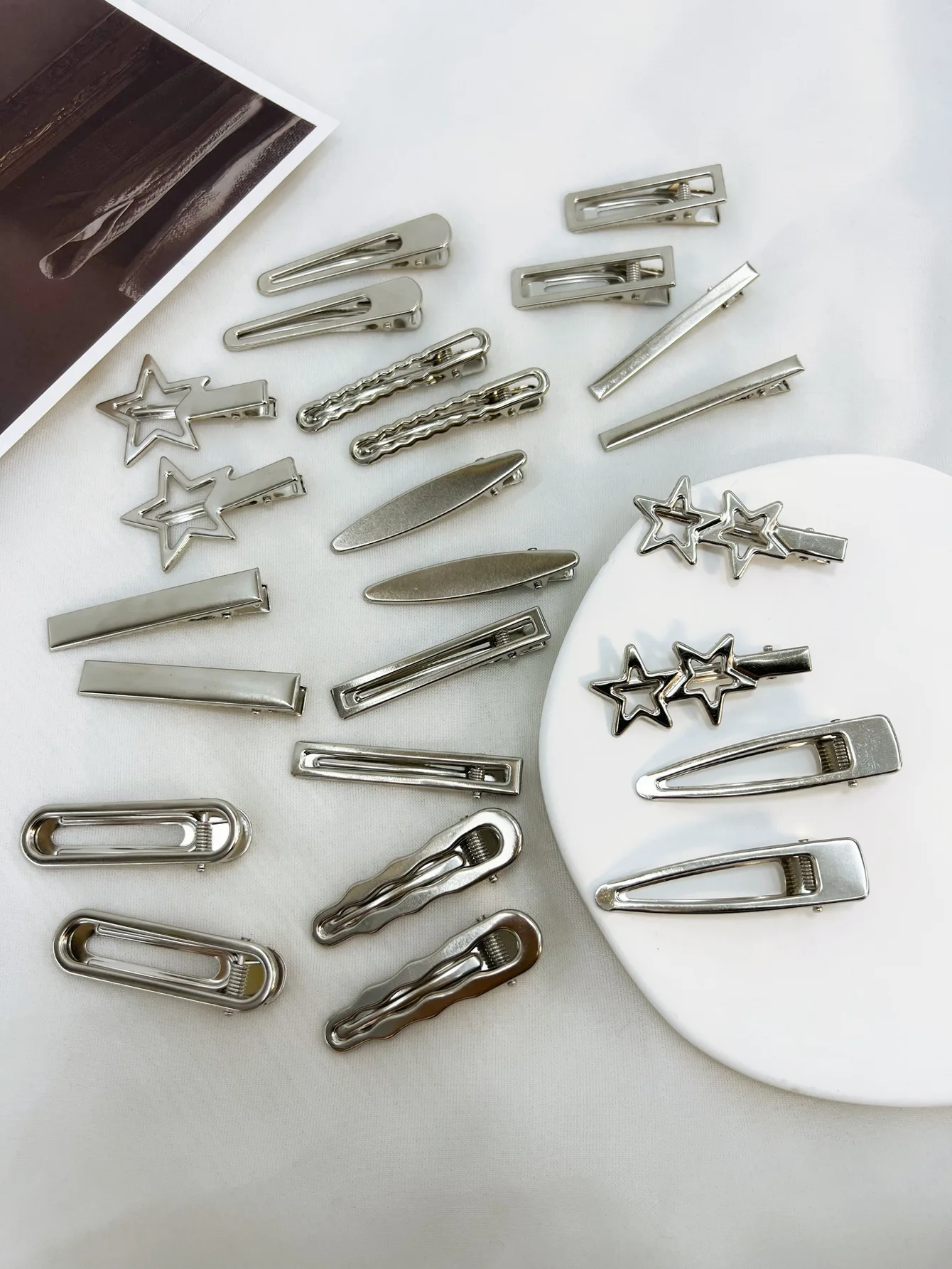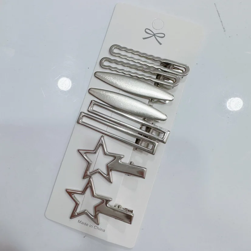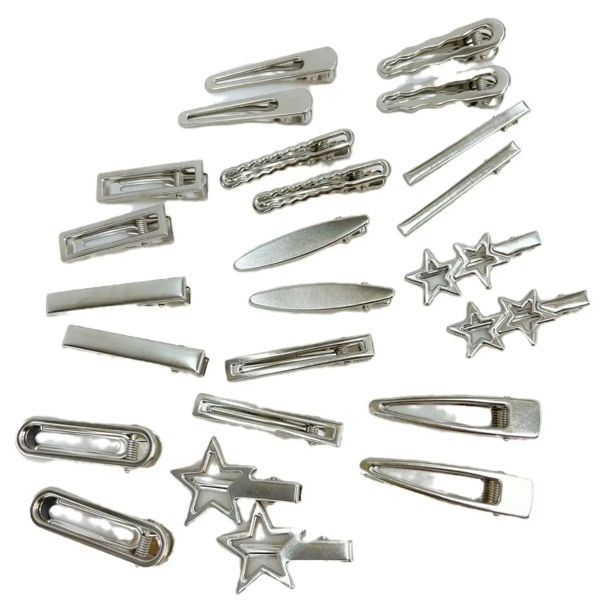 24 개/대 Y2K 여자를위한 실버 금속 머리핀 여자 스타 헤어 클립 여러 스타일 원활한 Duckbill 클립 여자 헤어 액세서리