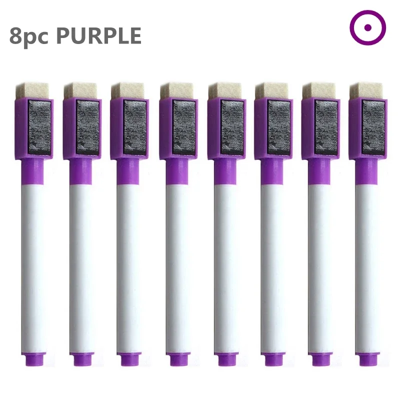 8PC 자기 다채로운 화이트 보드 펜 블랙 화이트 보드 마커 지우개 학교 공급 어린이 낙서 그리기 펜에 내장