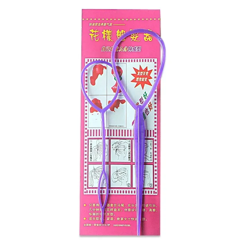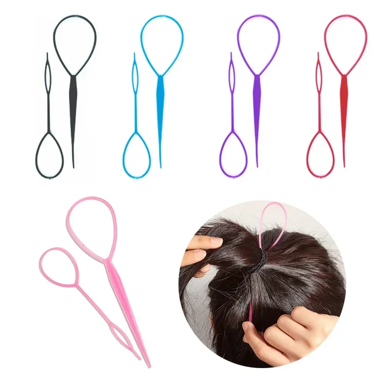 1세트 (2개입) 포니테일 플라스틱 루프 스타일링 도구, 간편한 매직 헤어 트위스트 스타일링 클립, 브레이더 도구, 블랙 번 헤어스타일 메이커
