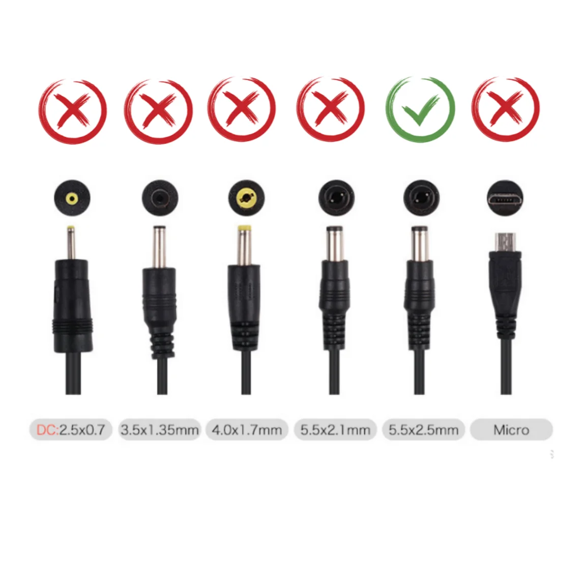 구경: 5.5*2.5mm( 경고: 3.5*1.35mm가 아닙니다.)