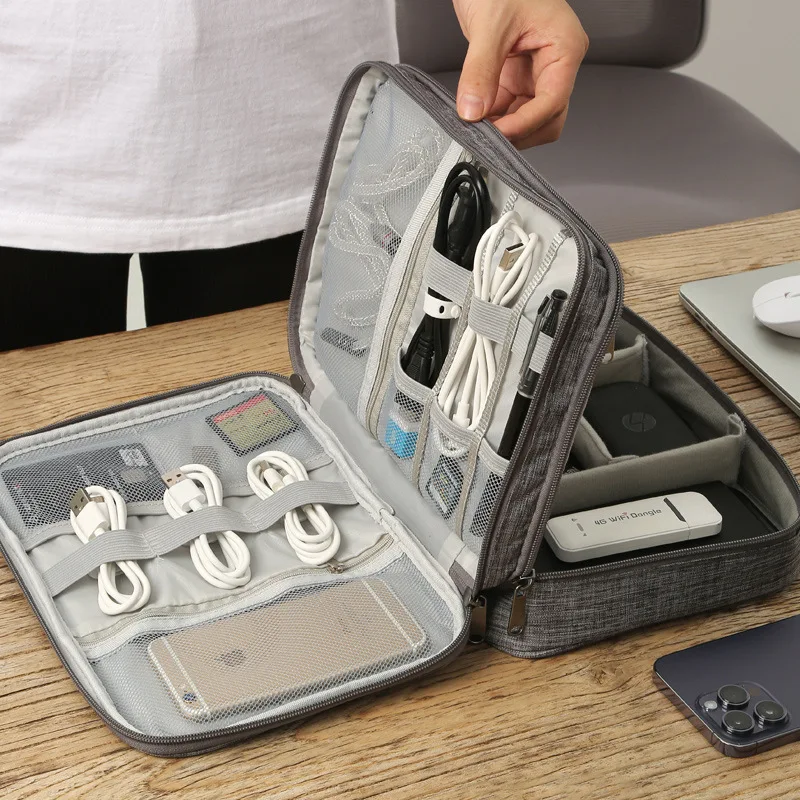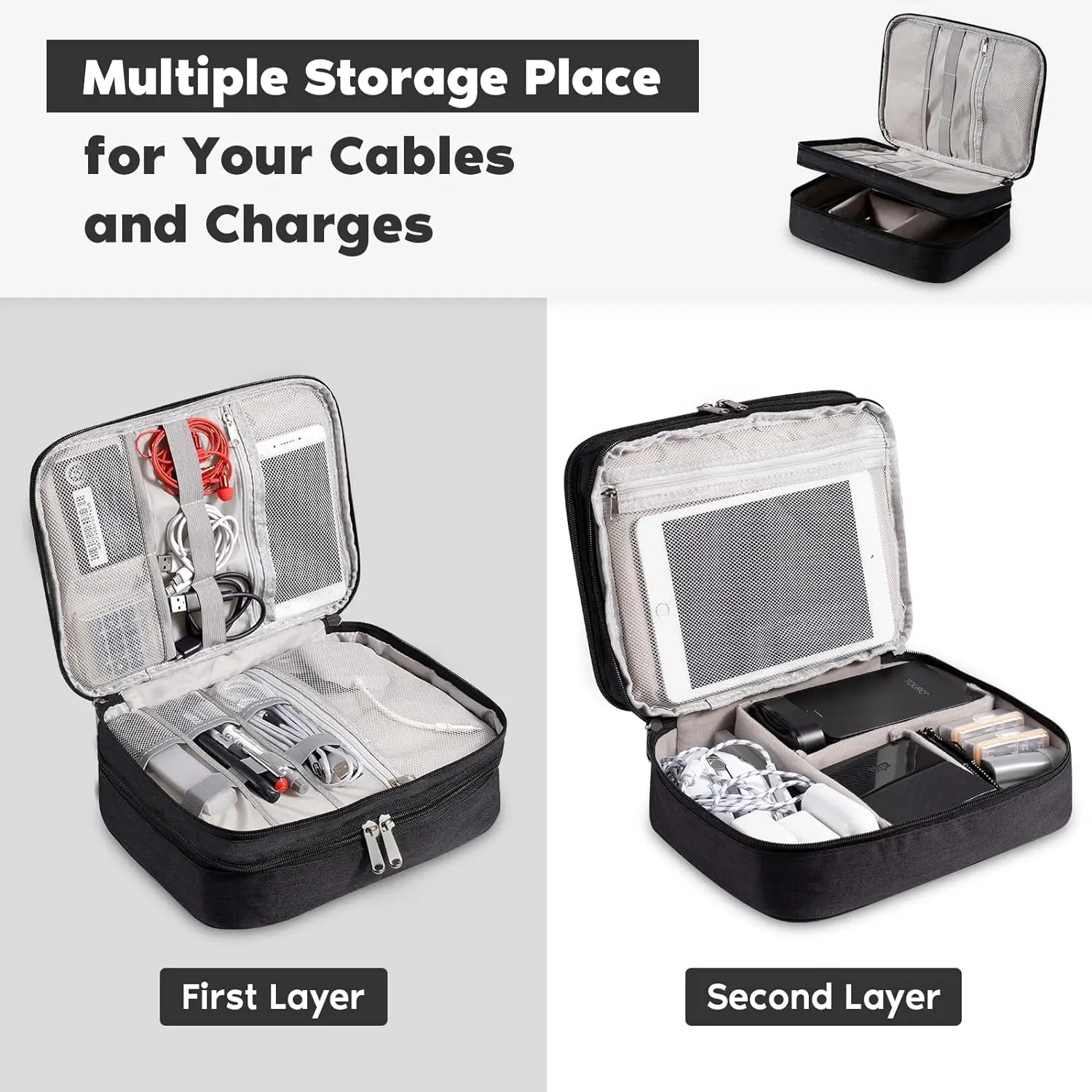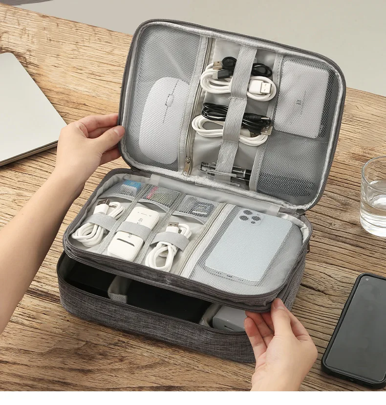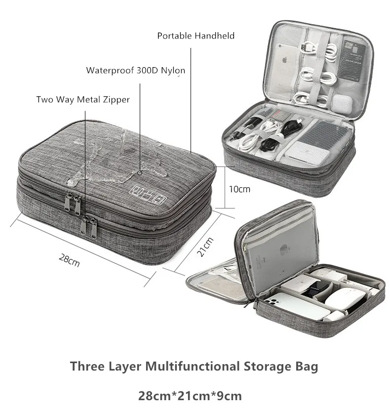 3단 디지털 수납 가방 다기능 케이블 정리함 휴대용 방수 여행용 케이스 (케이블, 데이터, 보조 배터리, 이어폰 수납)