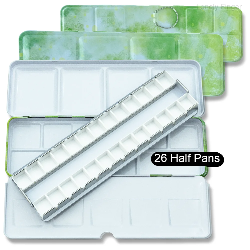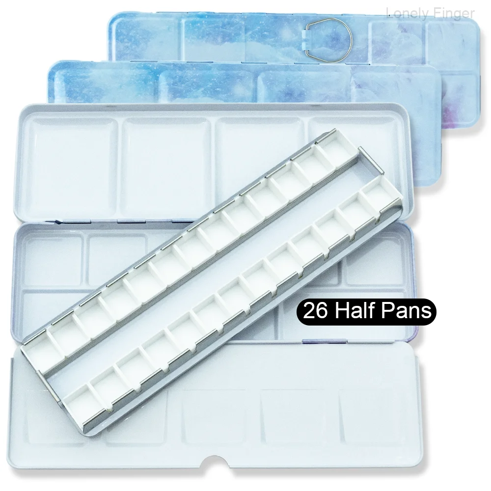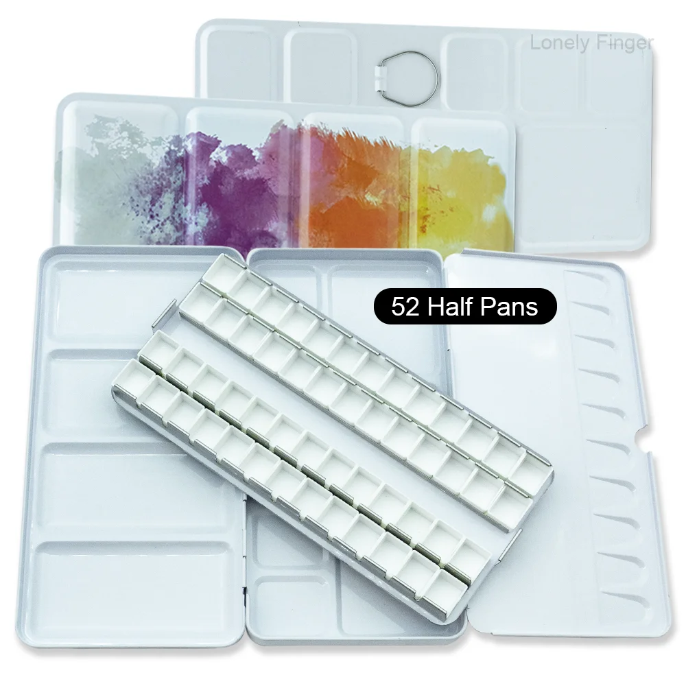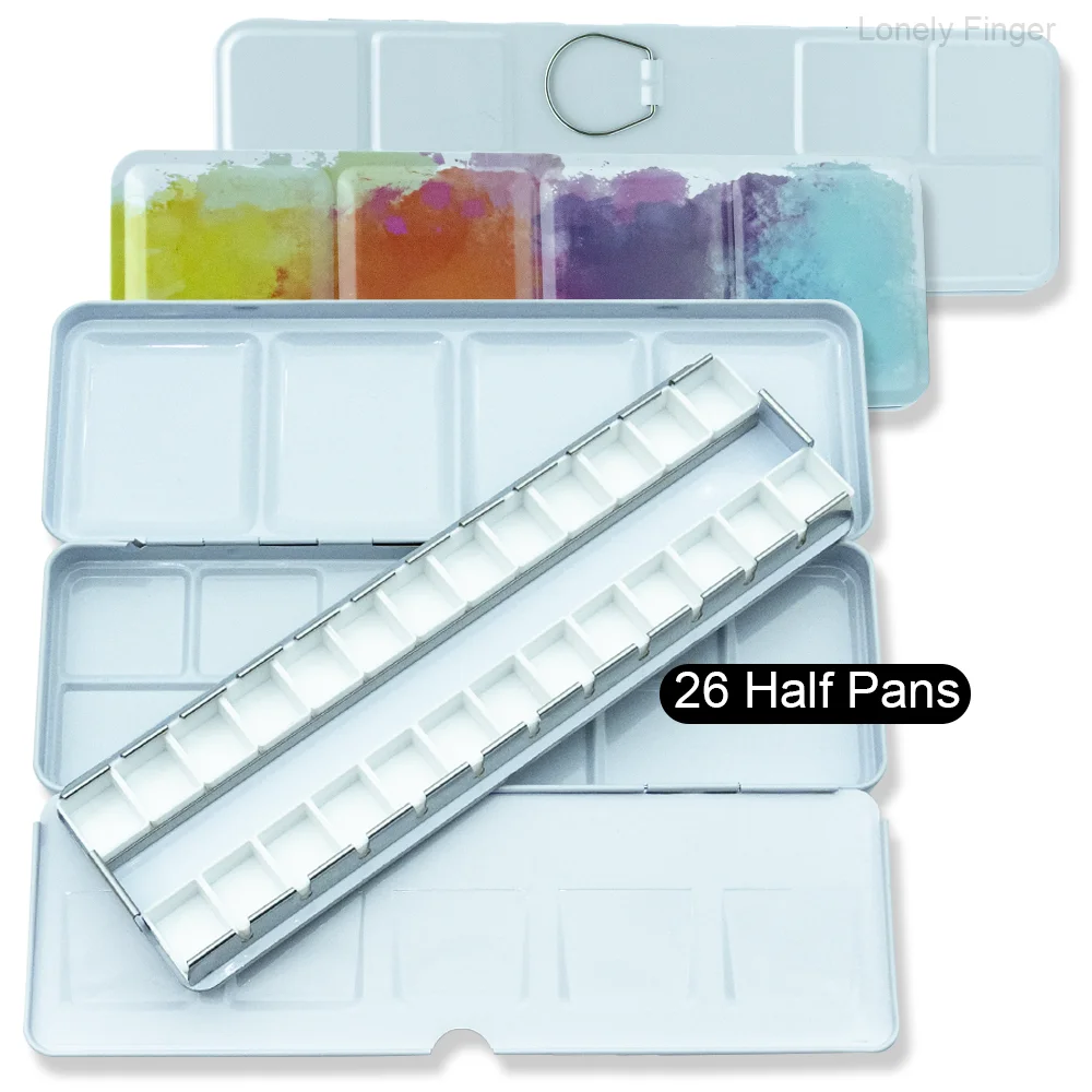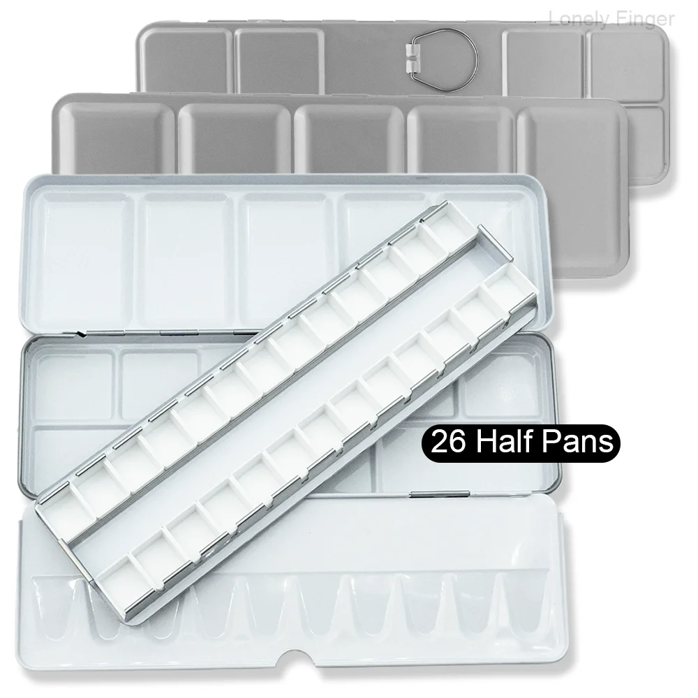 DIY 여행 수채화 팔레트에 대 한 14/26/52pcs 분리형 빈 수채화 하프 팬과 빈 금속 수채화 주석 팔레트 상자