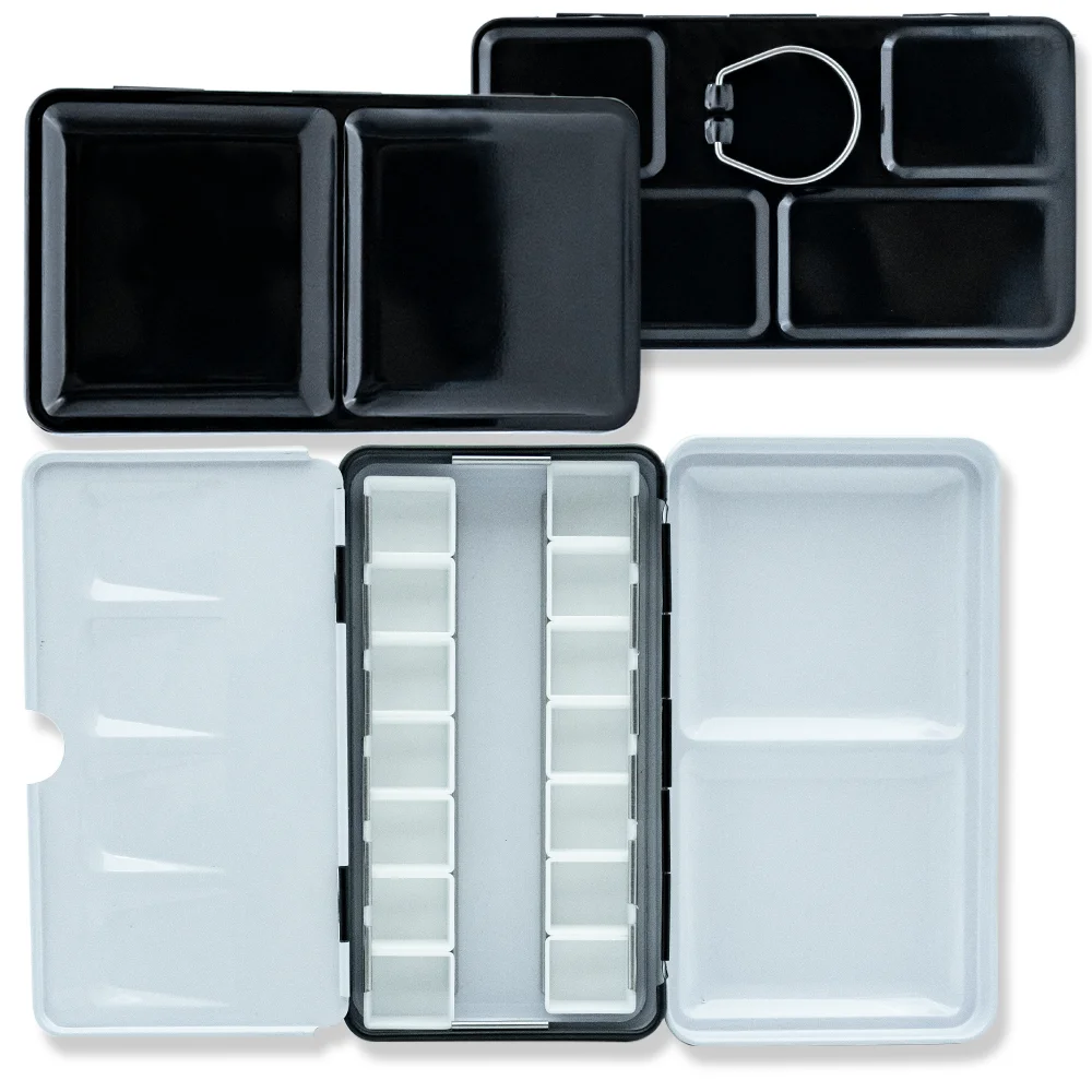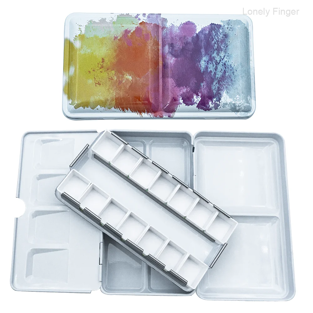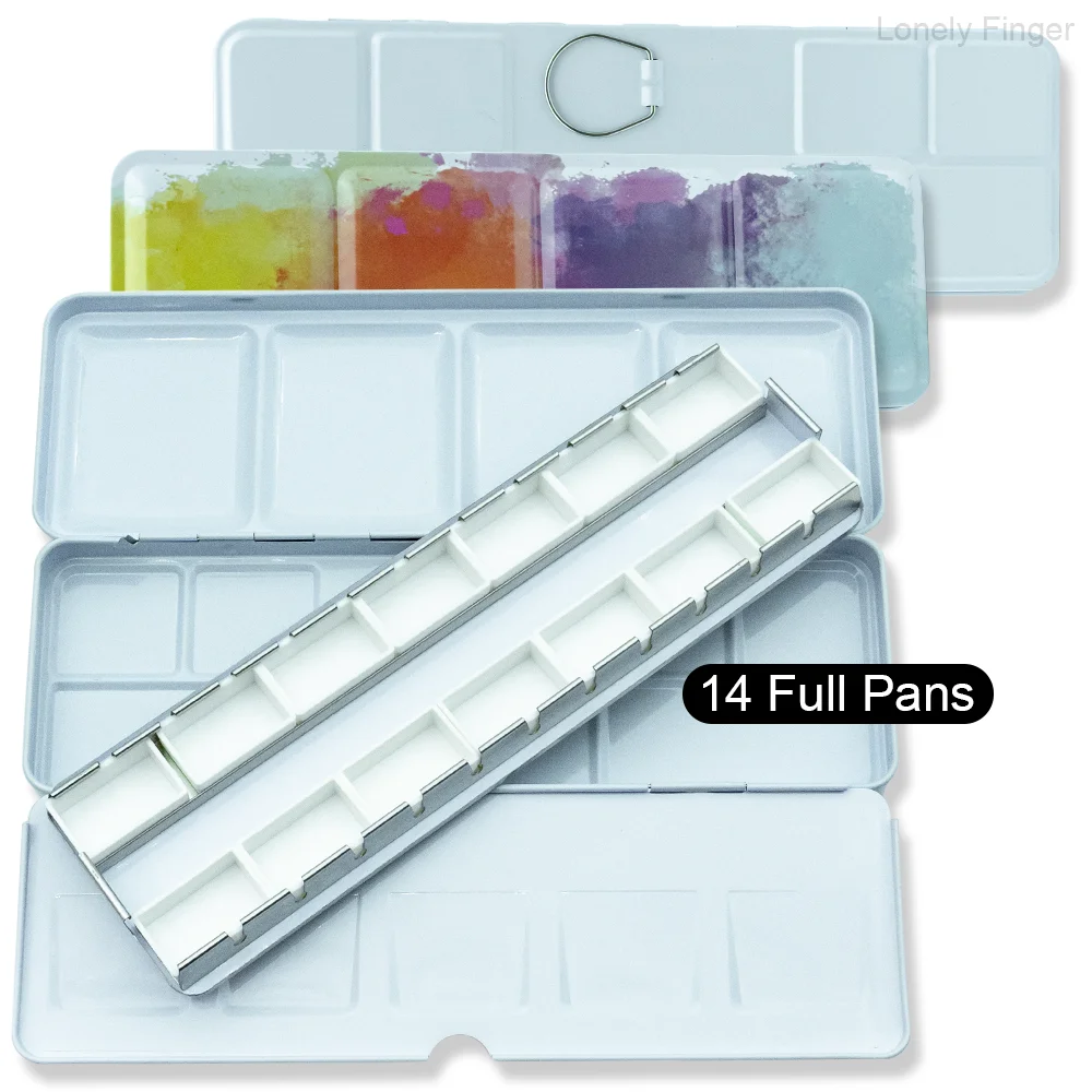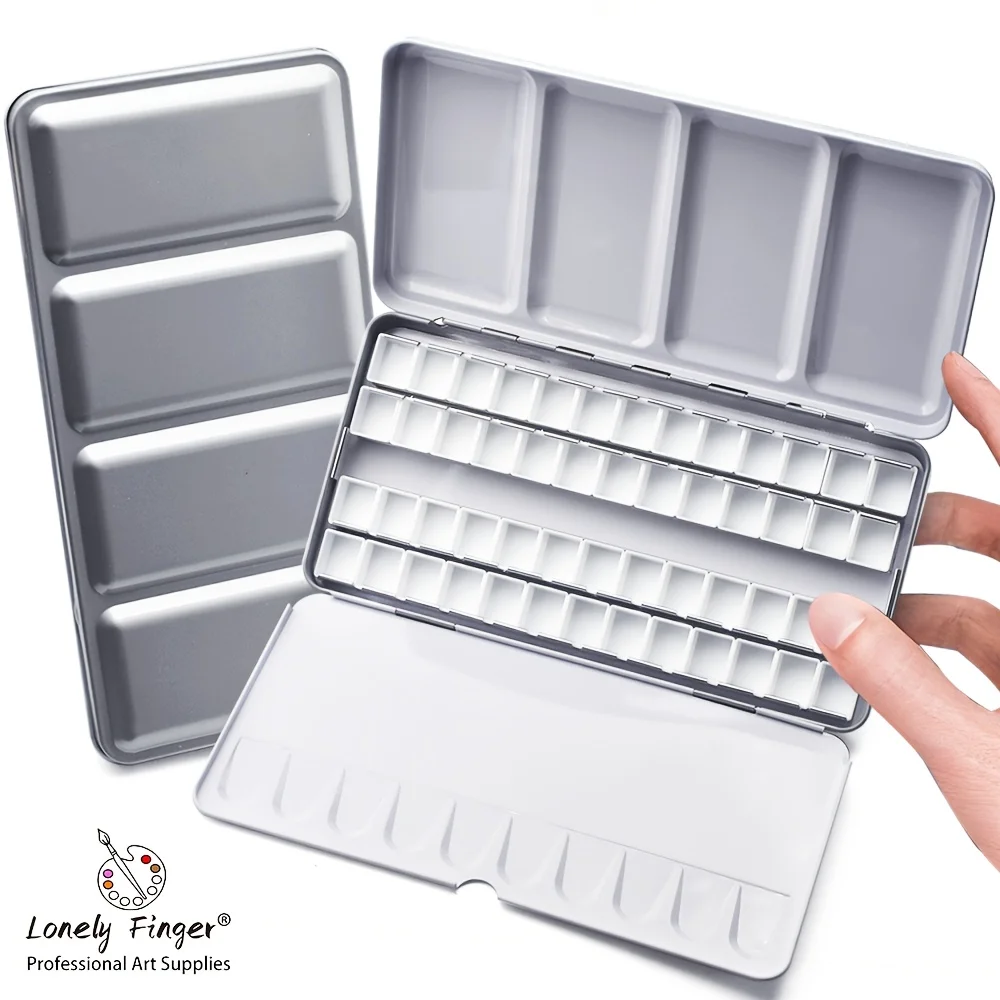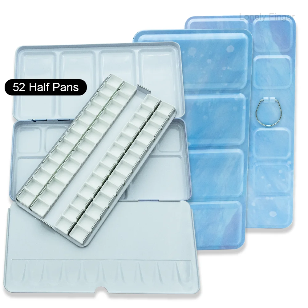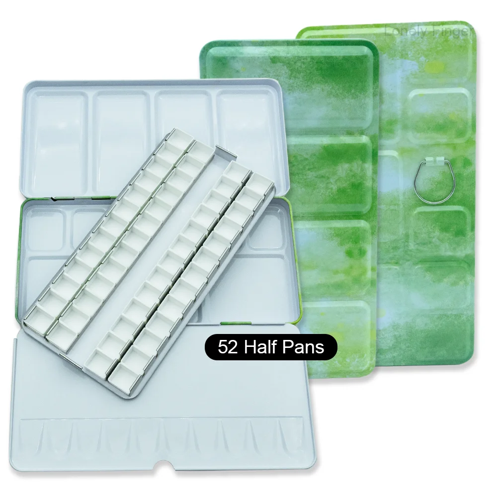 DIY 여행 수채화 팔레트에 대 한 14/26/52pcs 분리형 빈 수채화 하프 팬과 빈 금속 수채화 주석 팔레트 상자