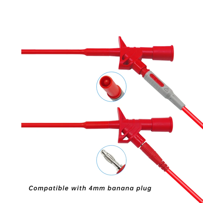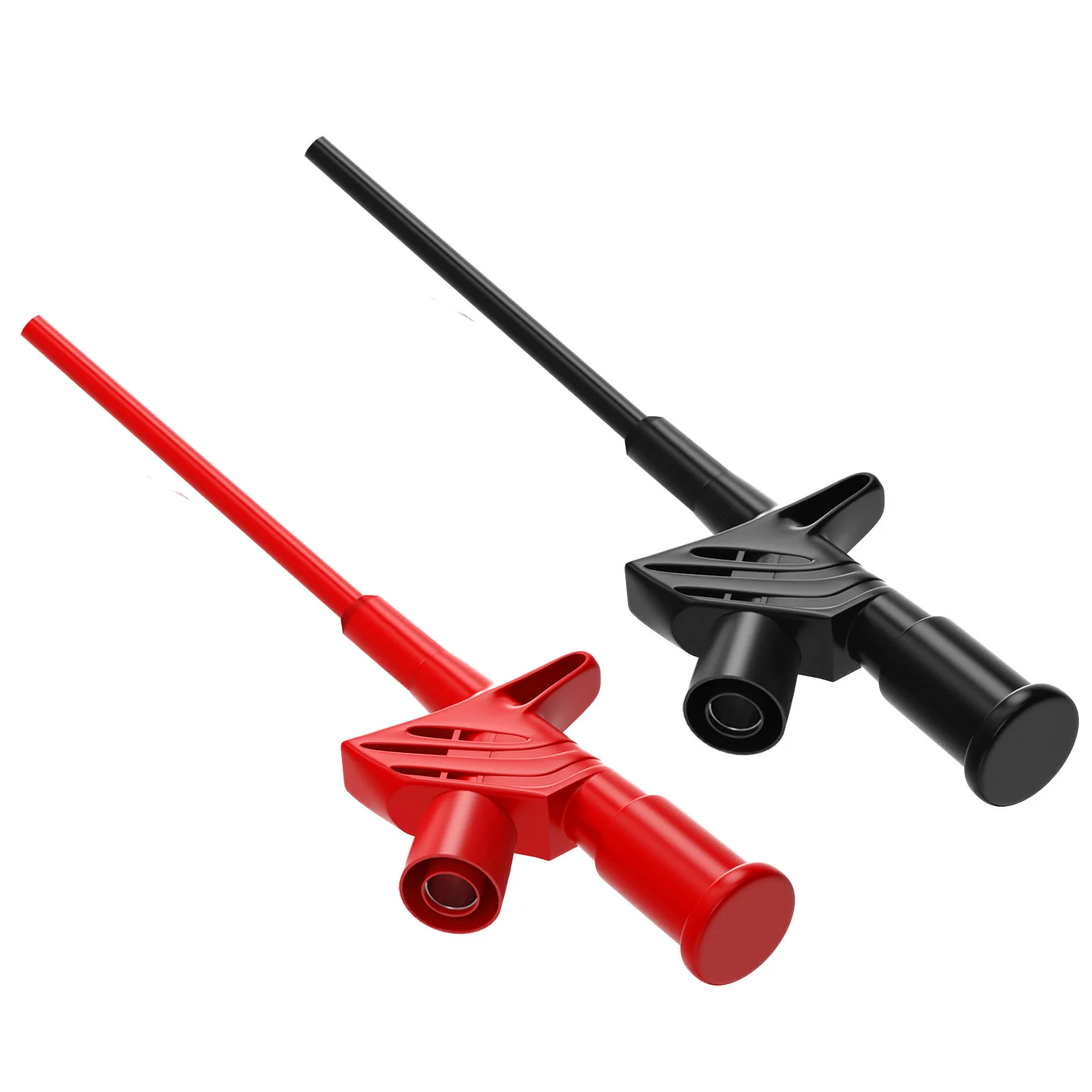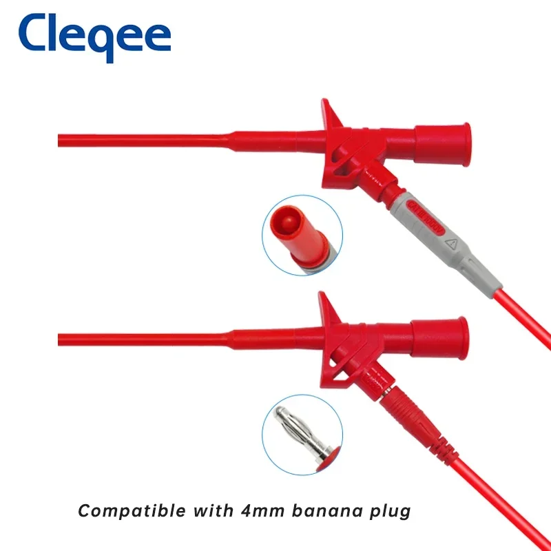 Cleqee P5004 2pcs 4mm 소켓이있는 빠른 테스트 후크 클립 1000V 멀티 미터 전기 테스트 용 고전압 유연한 전문 절연 테스트 프로브