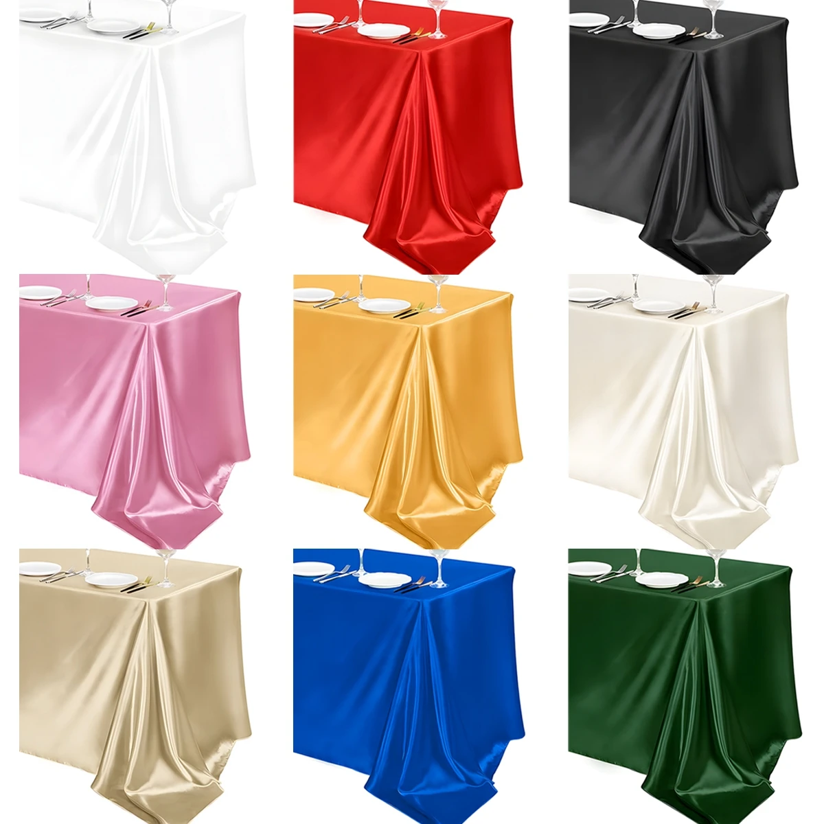 직사각형 식탁보 새틴 테이블 천으로 밝고 부드러운 흰색 핑크 솔리드 컬러 테이블 커버 웨딩 파티 용품 테이블 장식