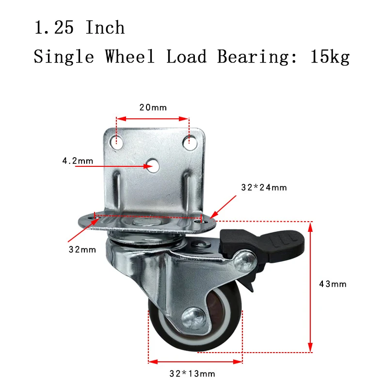 4pcs 범용 회전 캐스터 헤비 듀티 가구 휠 캐스터 안전 브레이크가있는 테이블 의자 소파 용 자동 트롤리 바퀴