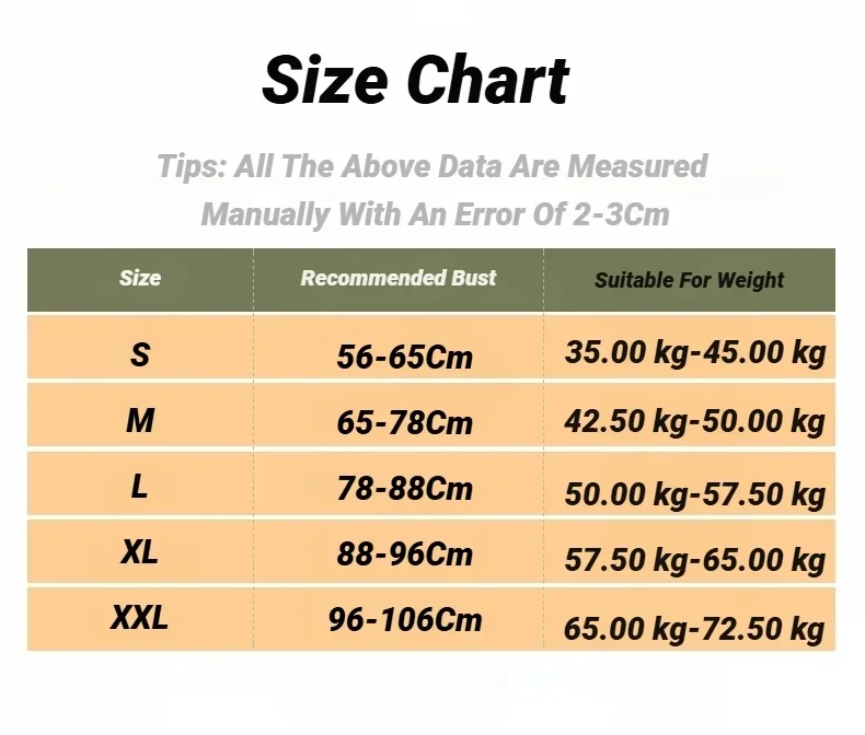XXL 96-106cm 65.00kg-72.50kg