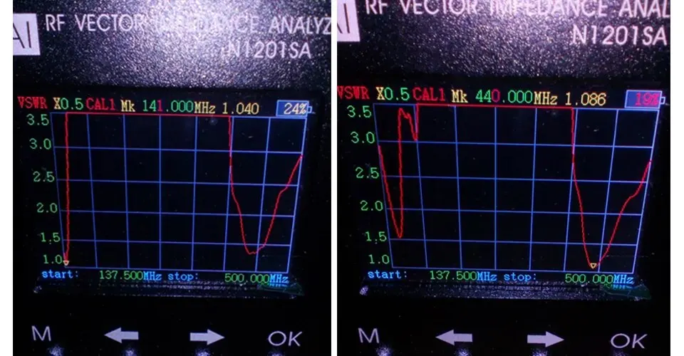 2. 각 안테나에는 중심 주파수가 있습니다. 이 주파수 지점에서 VSWR 값이 가장 낮고 사용 효과가 가장 좋습니다. 따라서 144MHz/430MHz 주변을 측정하십시오.