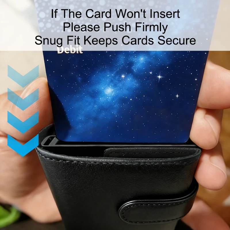 참고:이 카드 케이스는 엠보싱(두꺼워진/돌출된) 카드를 최대 4장, 또는 일반 카드를 최대 6장까지 수납할 수 있습니다.이 한계를 초과하면 카드가 제대로 배출되지 않습니다.