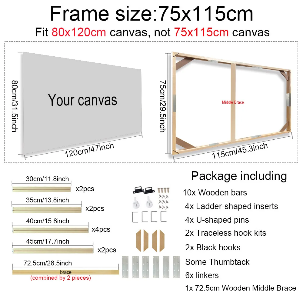 다양한 크기의 캔버스 프레임 나무 프레임 천연 나무 사진 유화 캔버스 다이아몬드 페인팅 프레임 캔버스 나무 벽 프레임