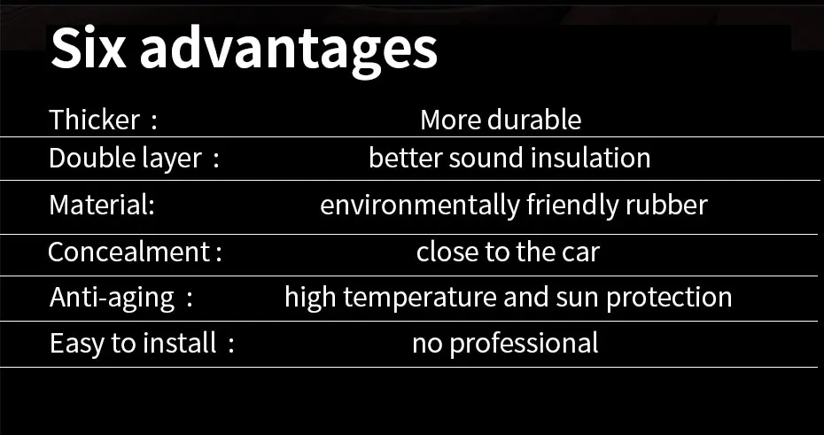 3.포장 도로 및 바람 소음이 차량으로 전달되는 것을 줄여 운전 편의성을 향상시키고 먼지와 비가 차량으로 유입되는 것을 방지합니다.