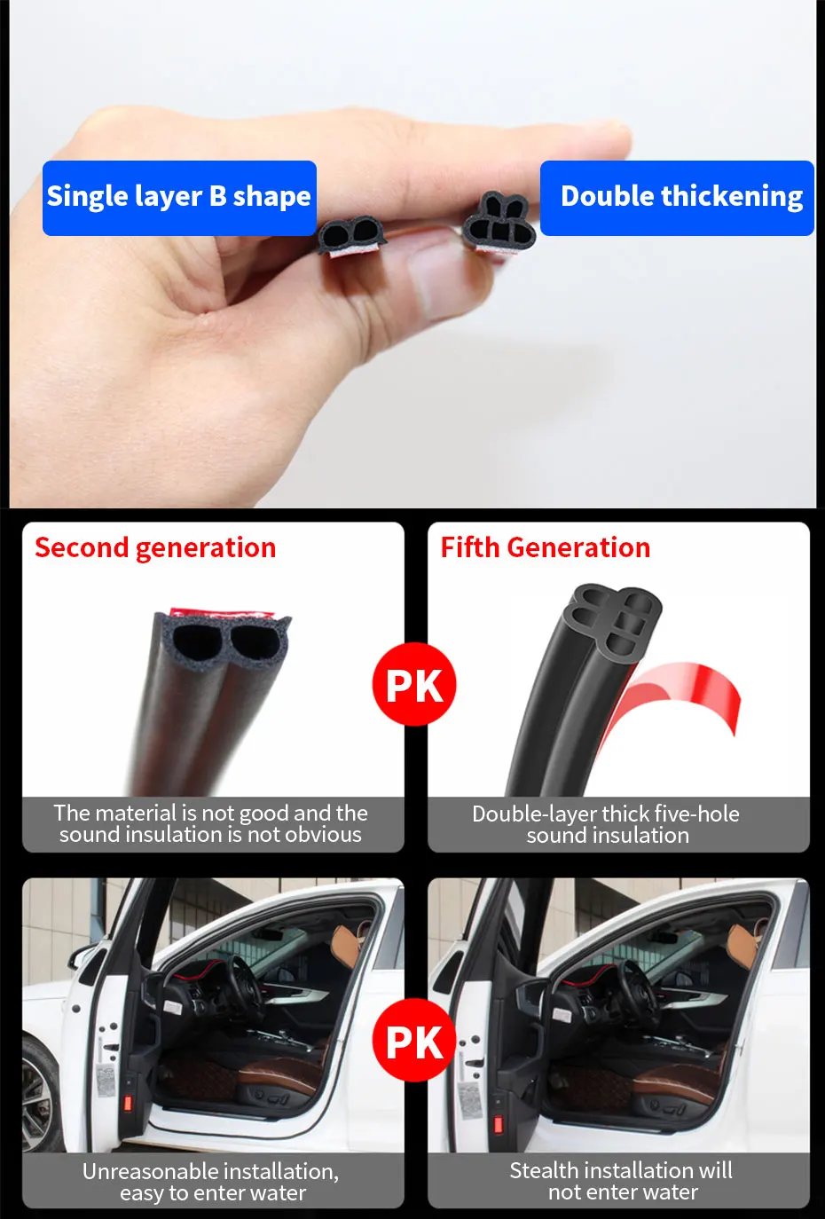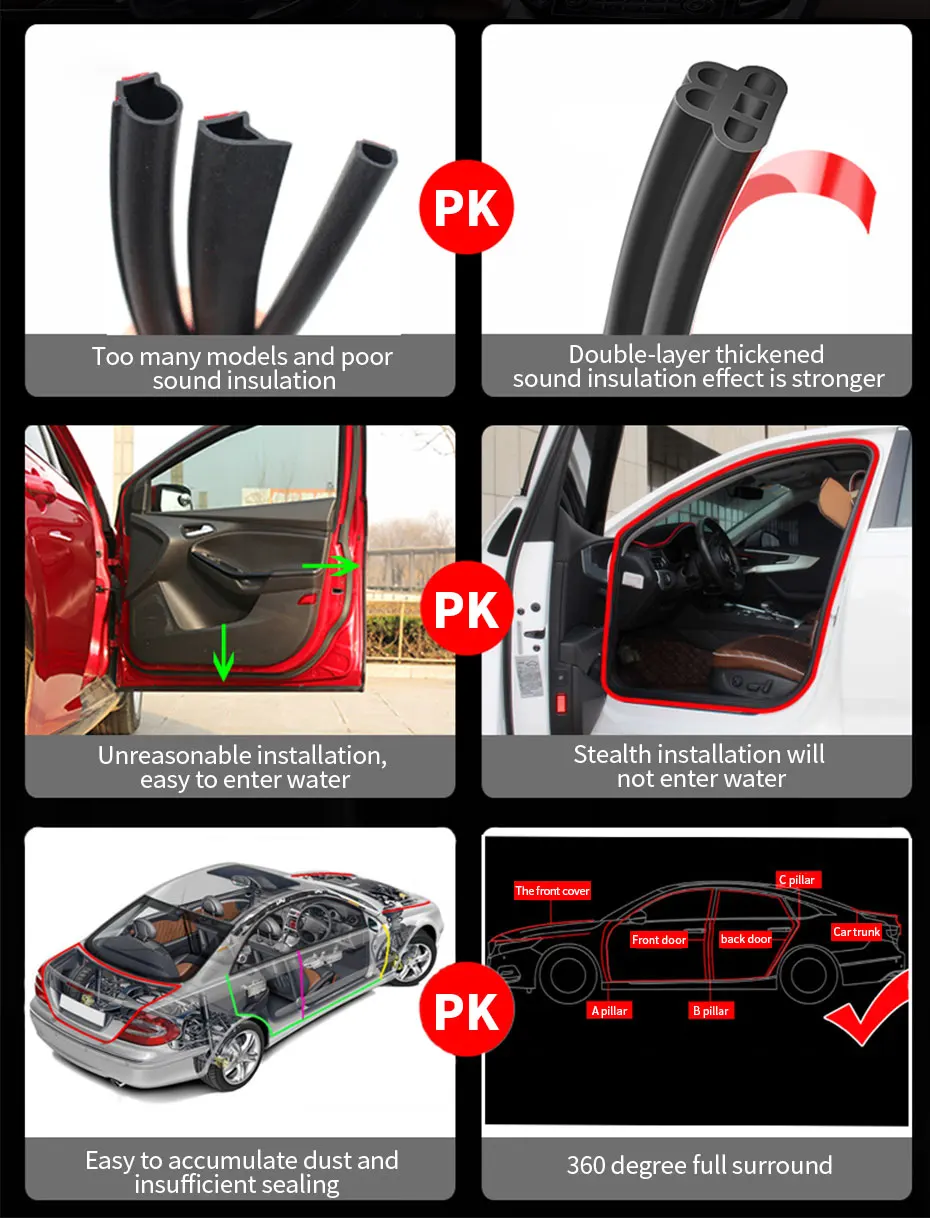 SEAMETAL 더블 레이어 자동차 도어 씰 스트립 고무 자체 접착 씰링 스트립 소음 절연 자동차 도어 후드 트렁크 방수