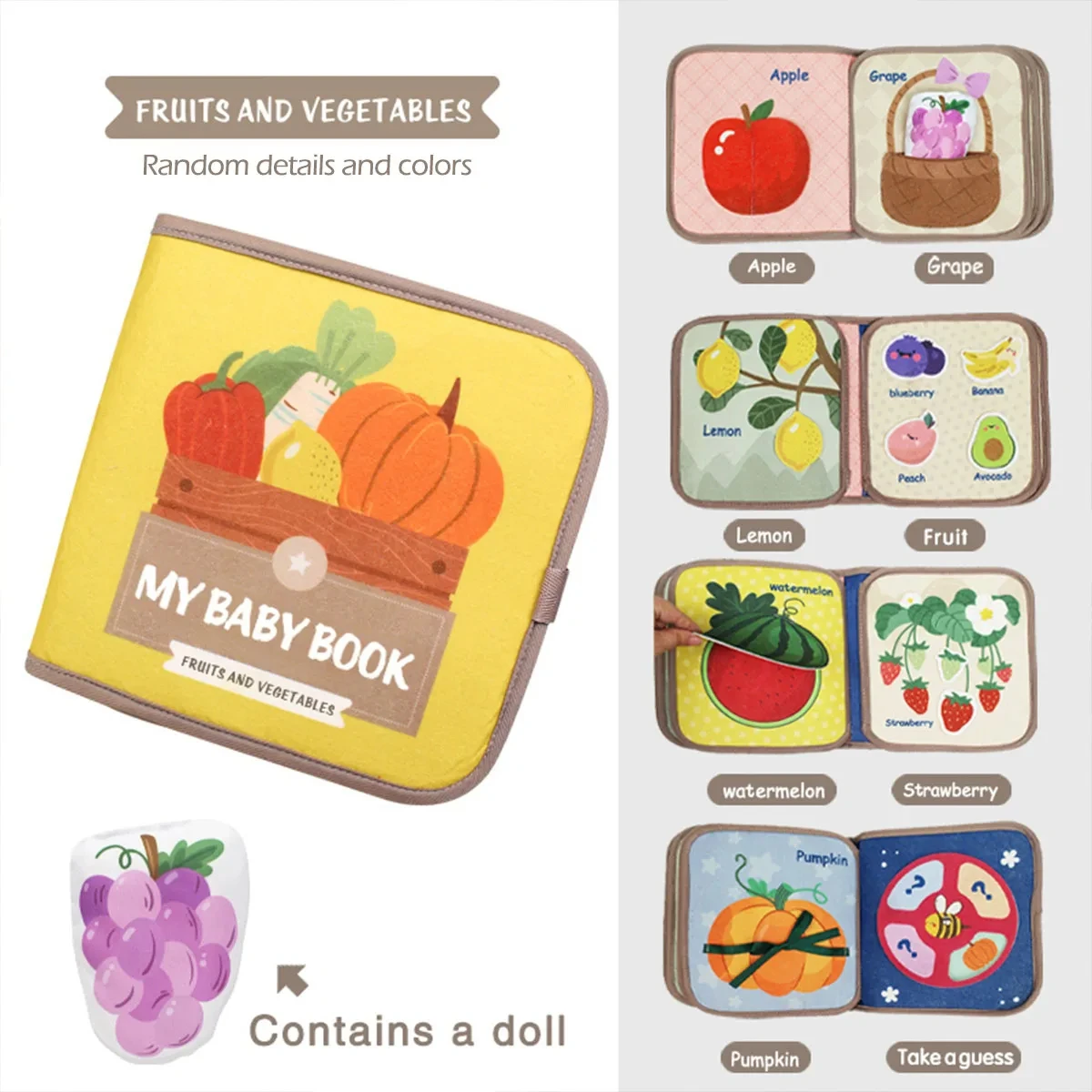 1pcs 몬테소리 바쁜 책 아기 조기 교육 도서, 퍼즐 장난감, 동물인지 패브릭 도서, 반복 붙여 넣기 책 및 감각 장난감